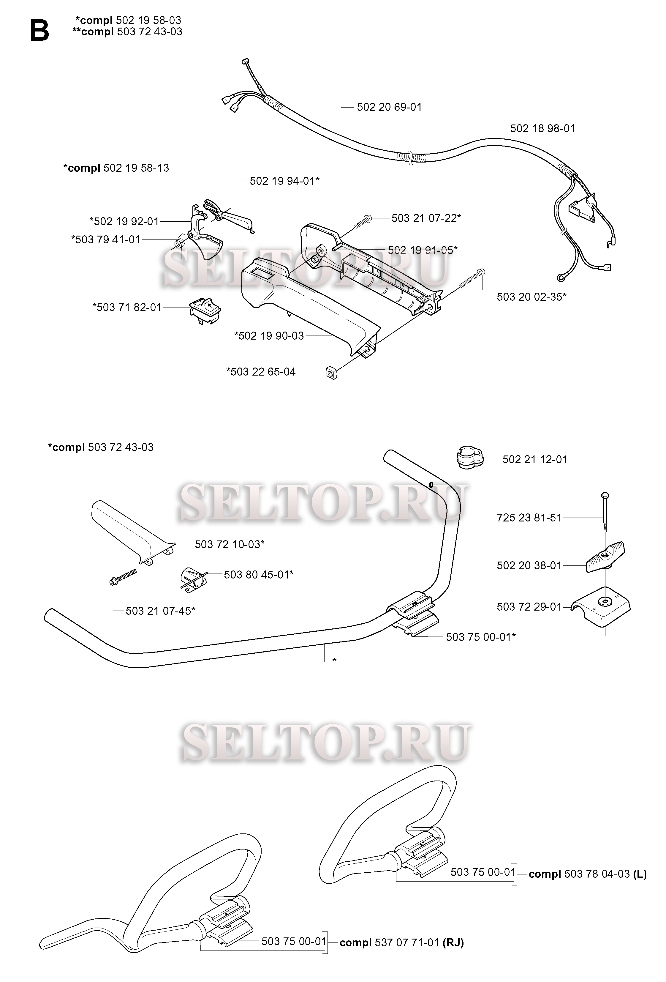 Ручка, рычаги управления для триммера Husqvarna 227 RD (c 2000-10), взрыв-схема:
