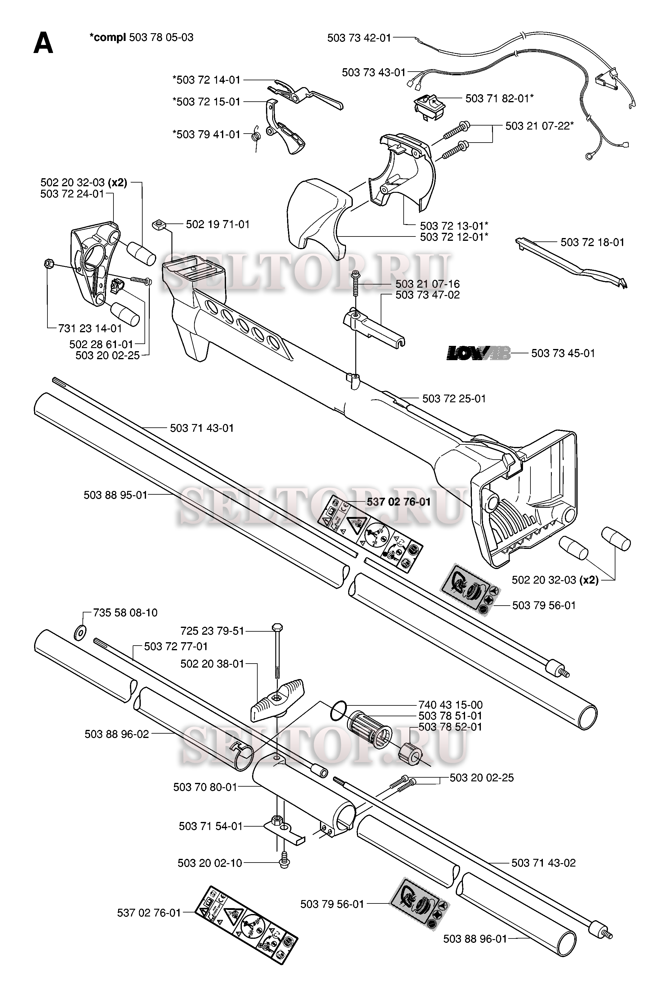 Вал привода, ручка для триммера Husqvarna 227 RD (c 2000-10), взрыв-схема: