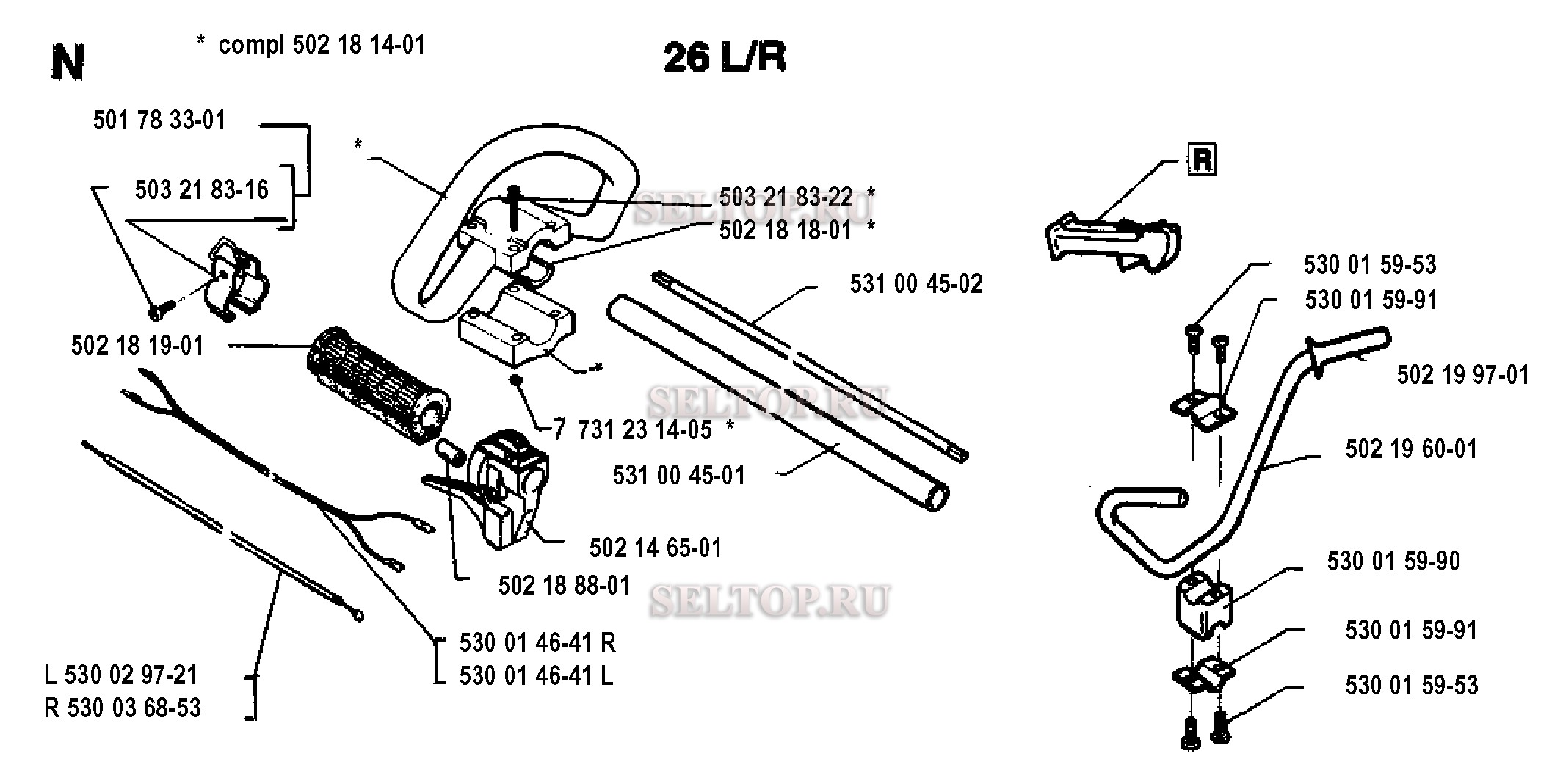 Ручка, рычаги управления для триммера Husqvarna 23 L (с 1993-05)