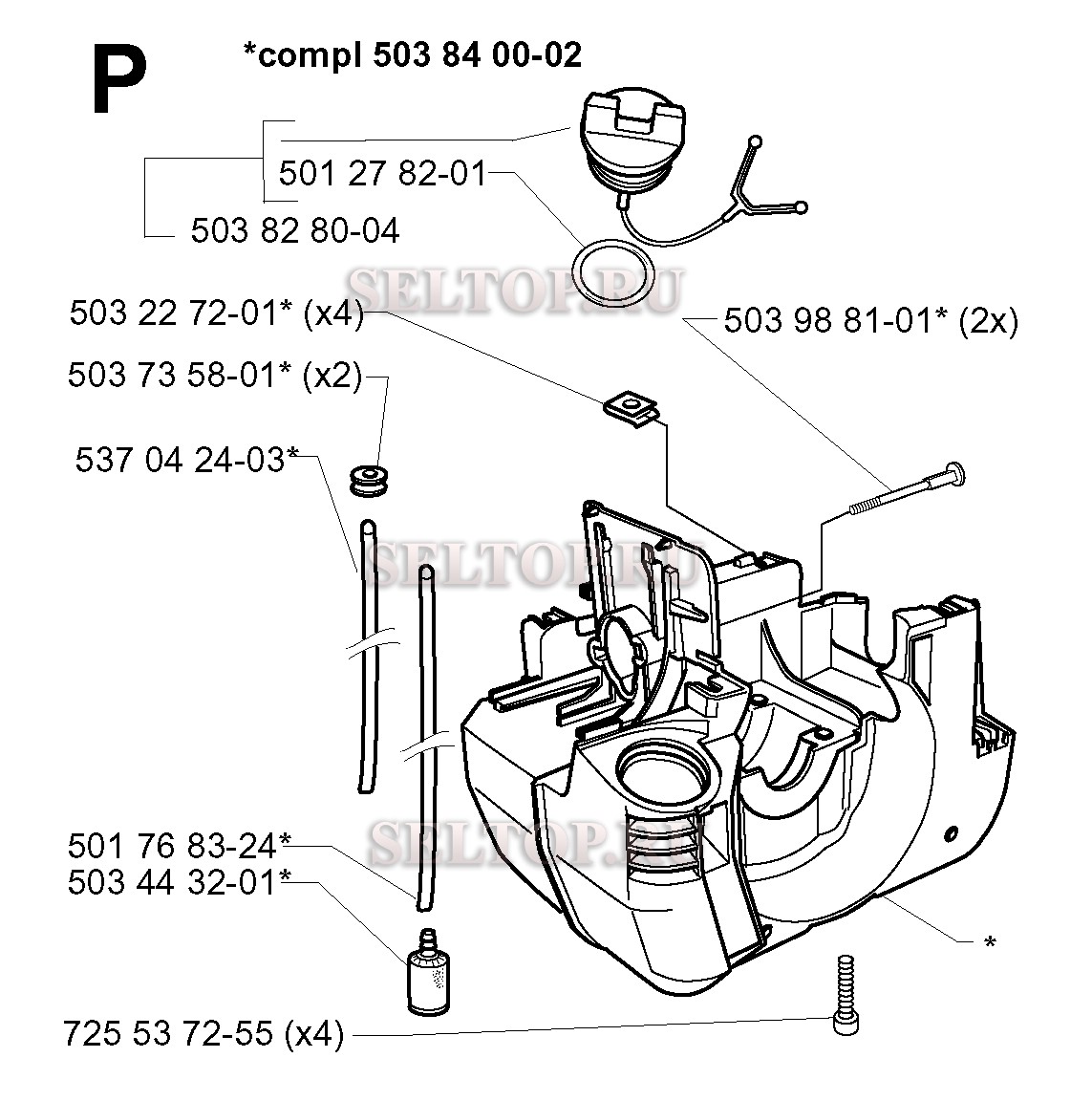 Картер для триммера Husqvarna 232 L (с 2000-04), взрыв-схема: