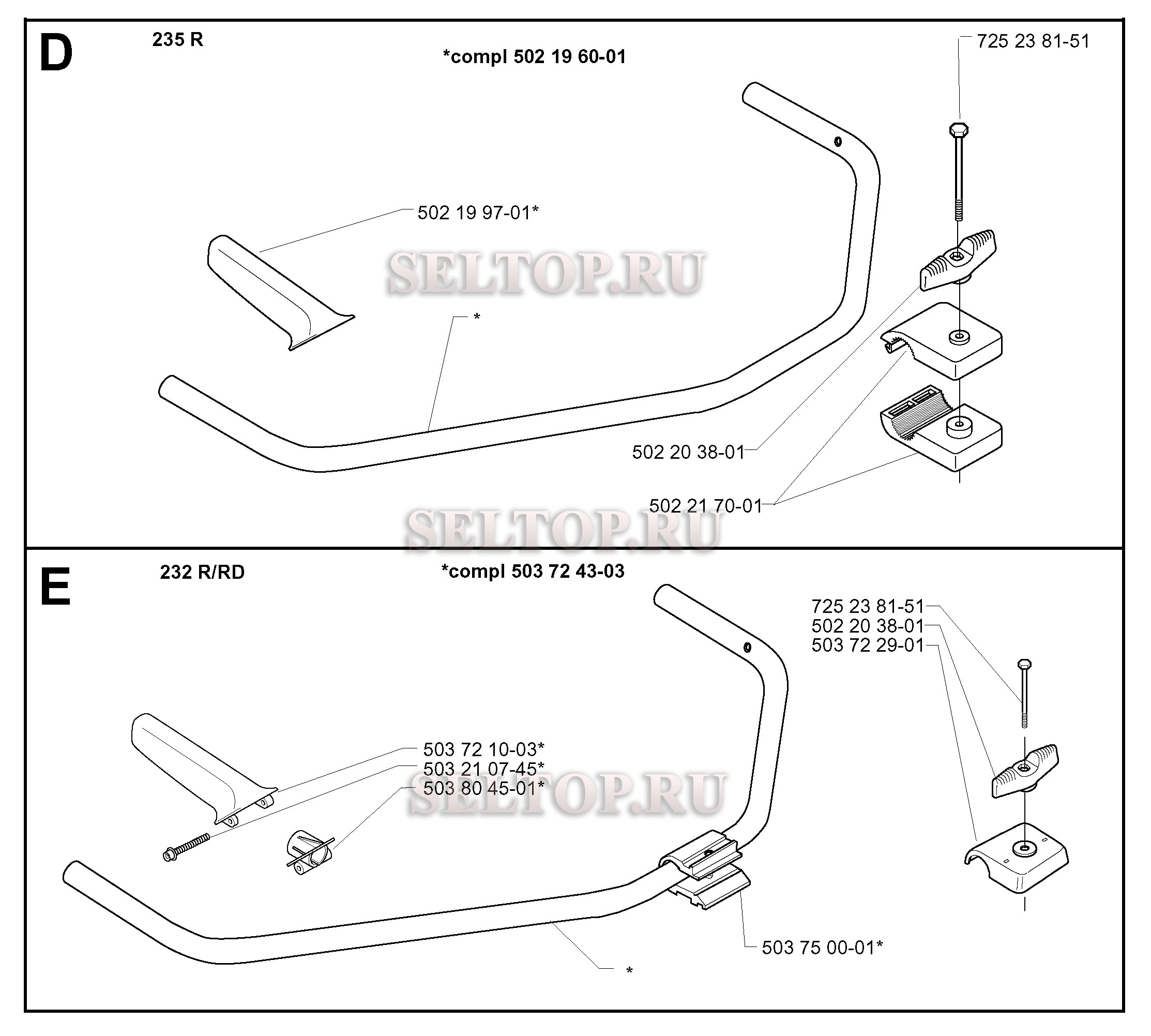 Ручка для триммера Husqvarna 232 L (с 2000-04), взрыв-схема: