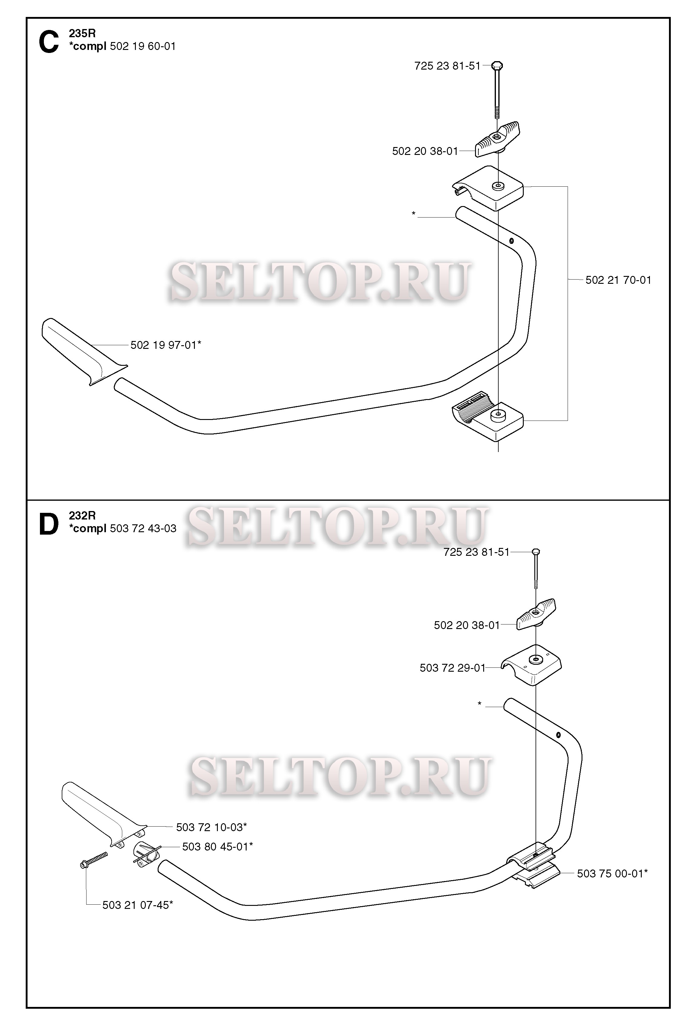Ручка для триммера Husqvarna 232 L (с 2002-09), взрыв-схема: