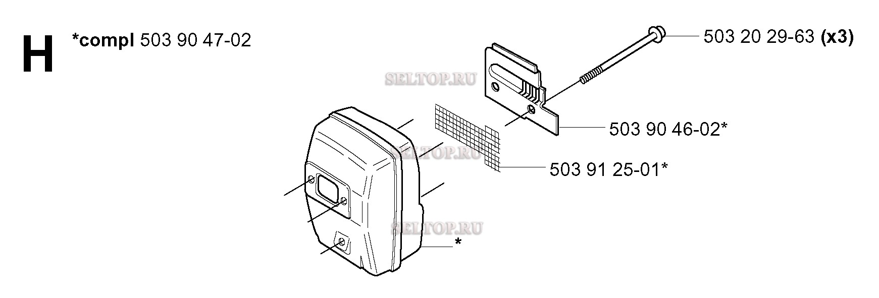 Глушитель для триммера Husqvarna 232 L (с 2006-01), взрыв-схема: