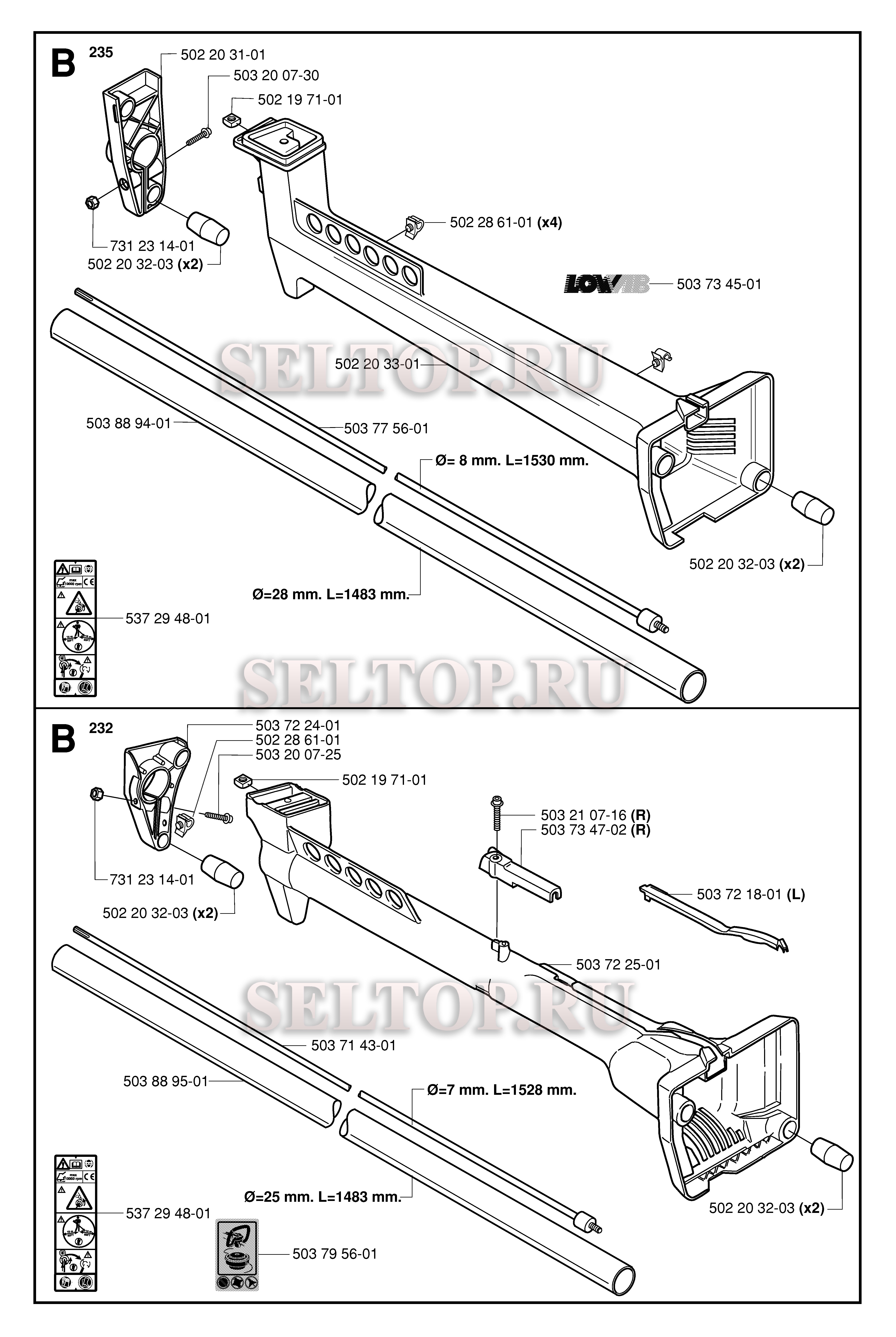 Ведущий вал для триммера Husqvarna 232 L (с 2006-01), взрыв-схема: