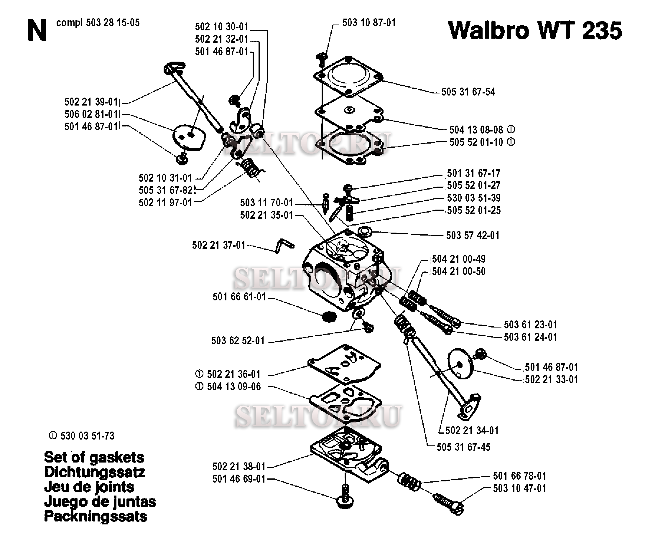 Запчасти карбюратора для триммера Husqvarna 232 R (c 1994-02)