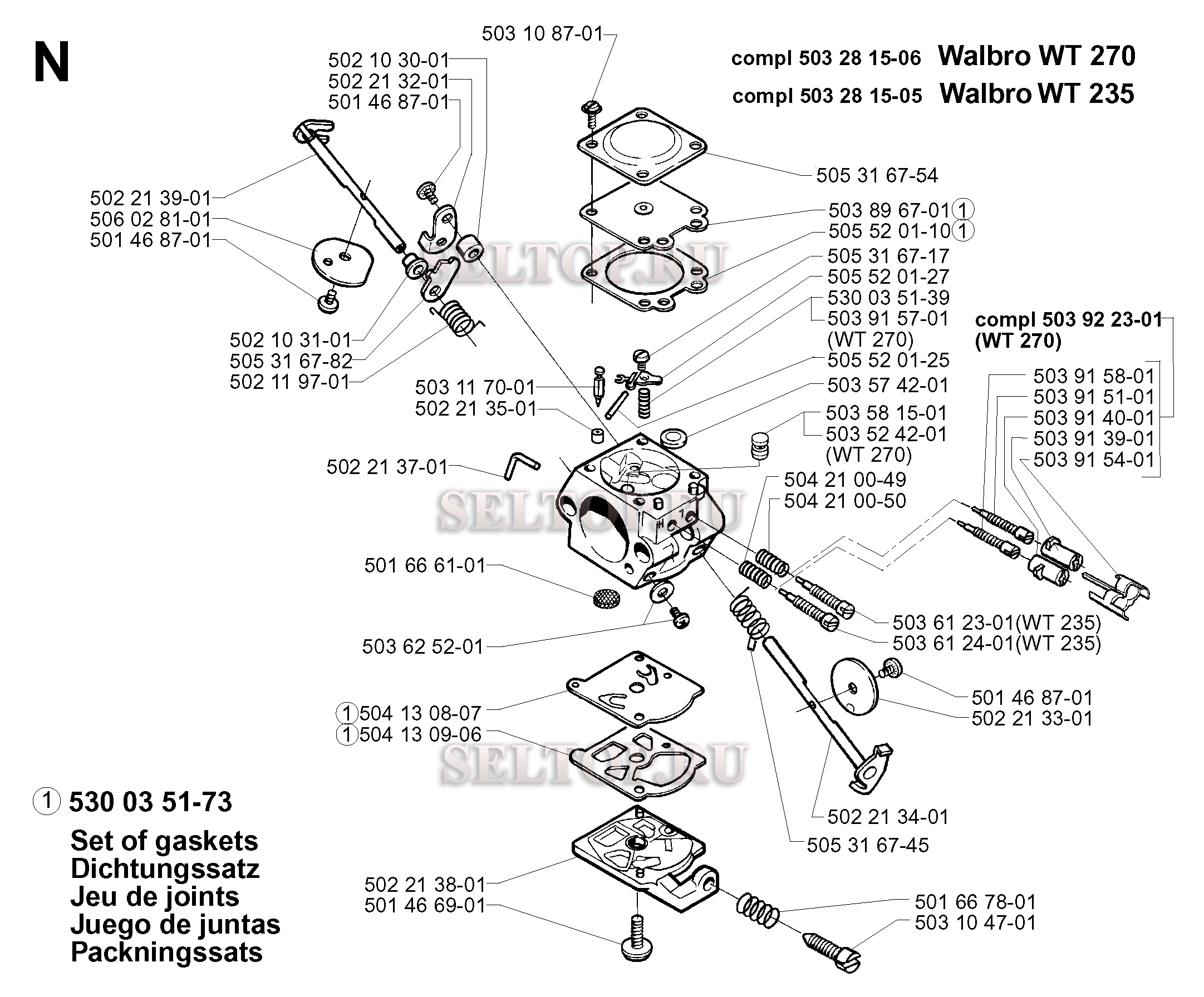 Запчасти карбюратора для триммера Husqvarna 232 R (c 1997-02)