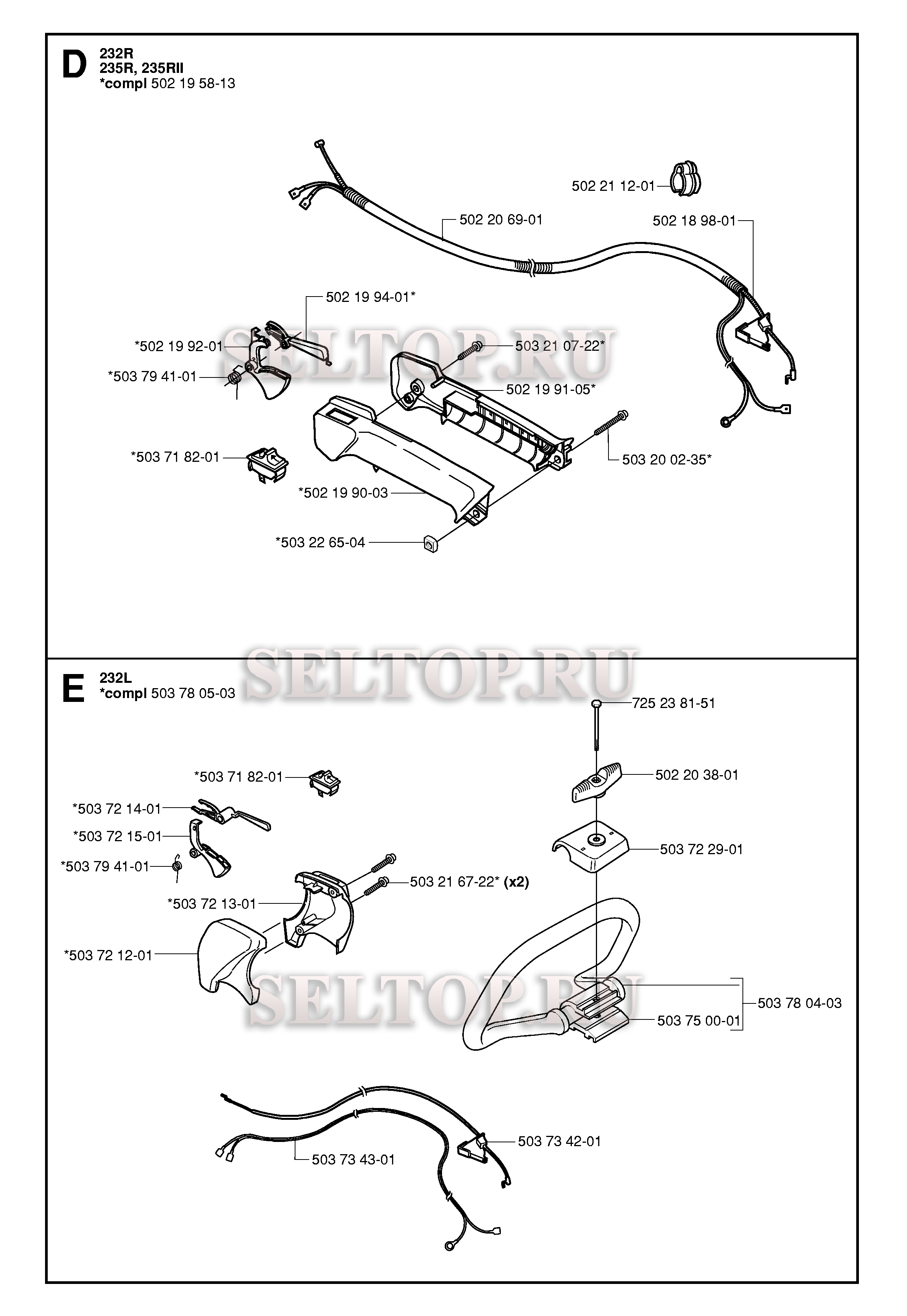 Управление дросселем для триммера Husqvarna 232 R (c 2006-01), взрыв-схема: