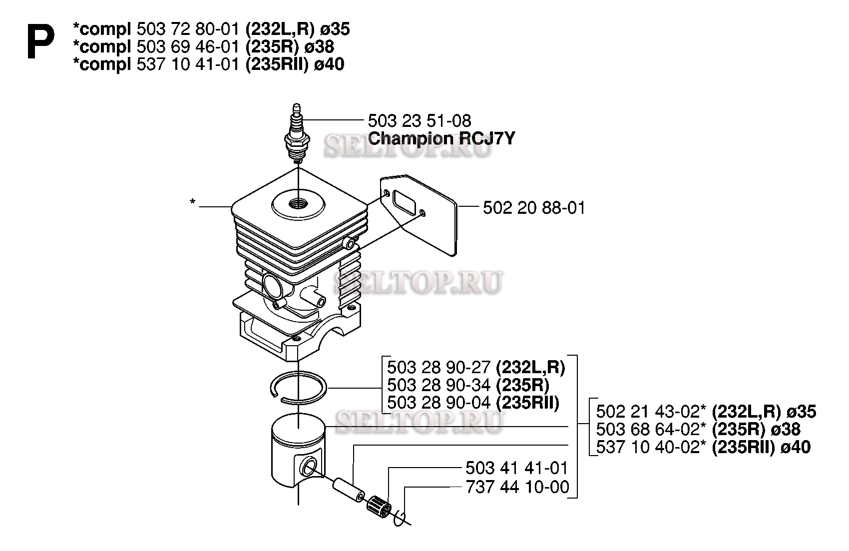 Поршень, цилиндр для триммера Husqvarna 232 R (c 2006-04)