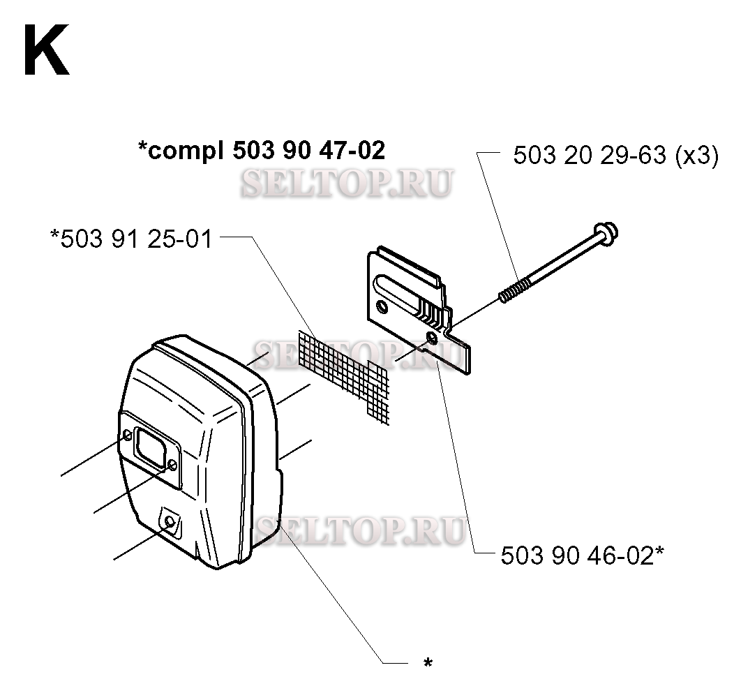 Глушитель для триммера Husqvarna 232 RJ (c 2000-04), взрыв-схема: