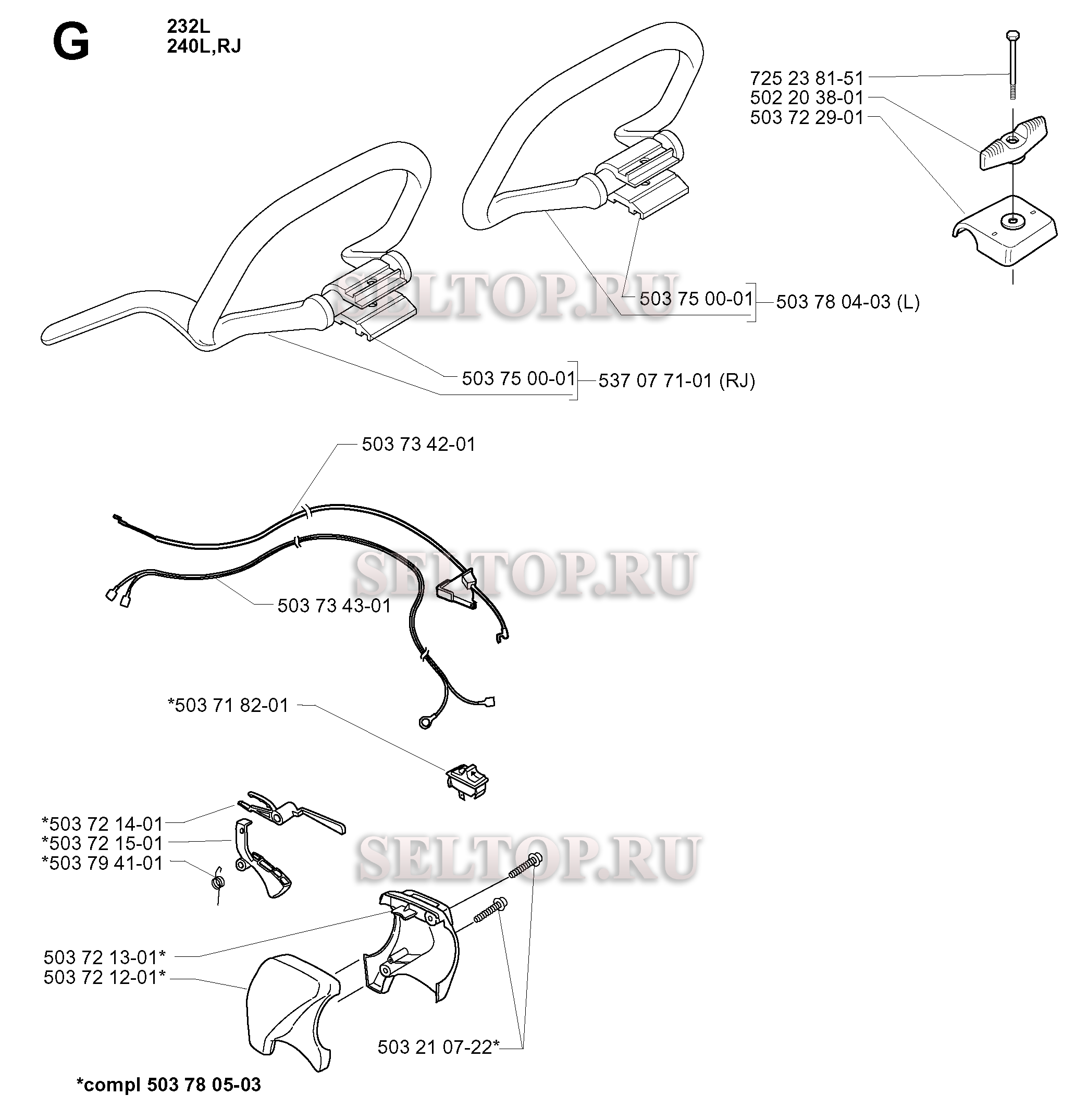 Ручка, рычаги управления для триммера Husqvarna 232 RJ (c 2000-04)
