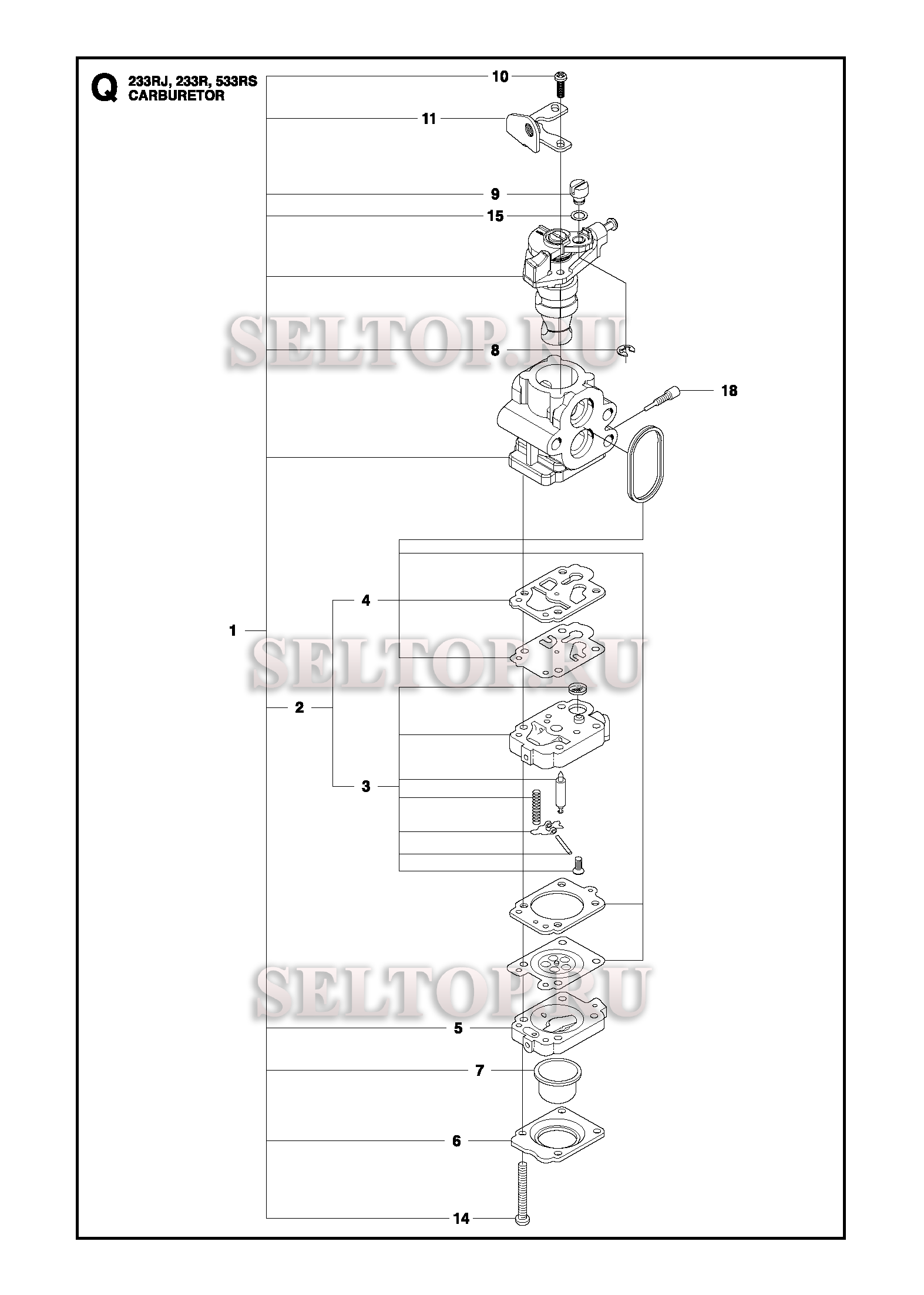 Карбюратор для триммера Husqvarna 233 RJ (c 2014-01), взрыв-схема: