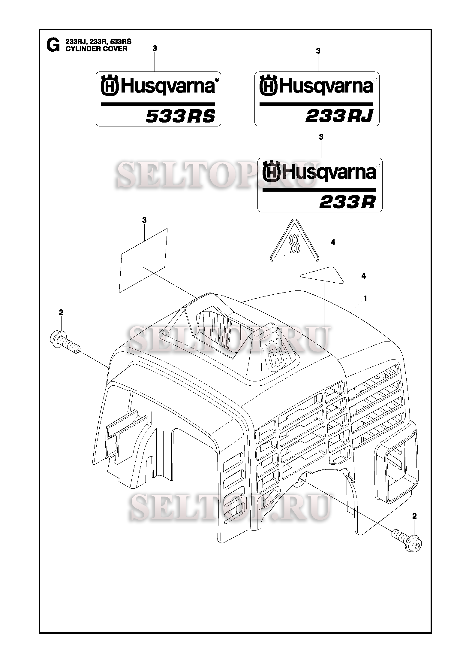 Крышка цилиндра для триммера Husqvarna 233 RJ (c 2014-01), взрыв-схема: