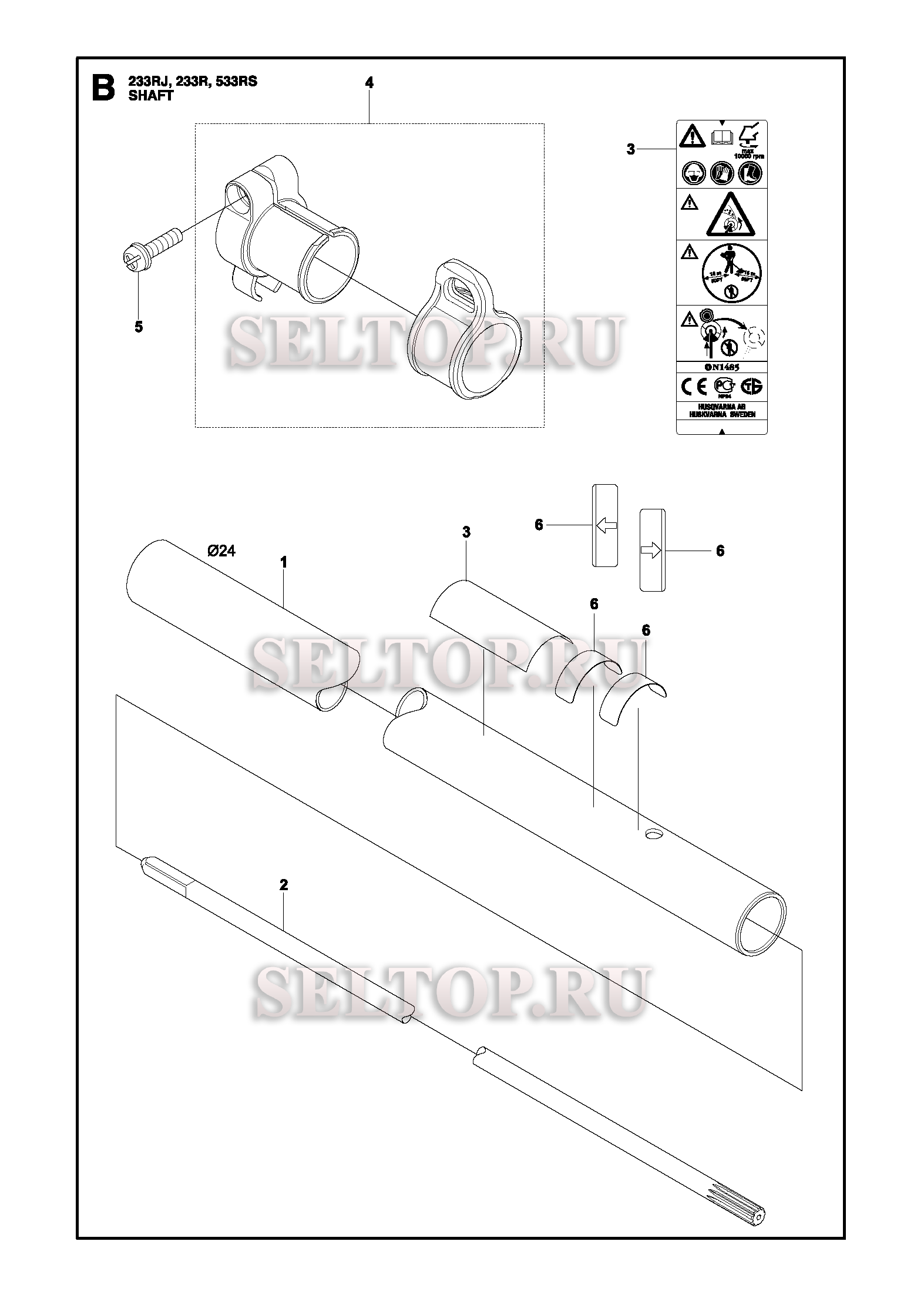 Ведущий вал для триммера Husqvarna 233 RJ (c 2014-01), взрыв-схема: