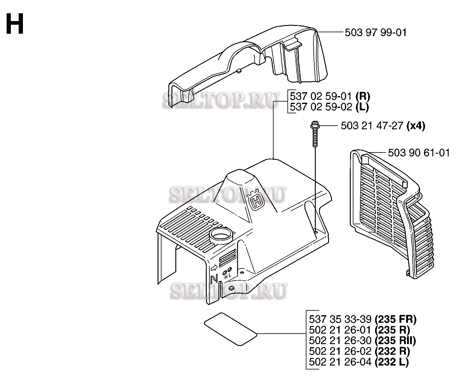 Крышка цилиндра для триммера Husqvarna 235 FR (c 2007-01), взрыв-схема: