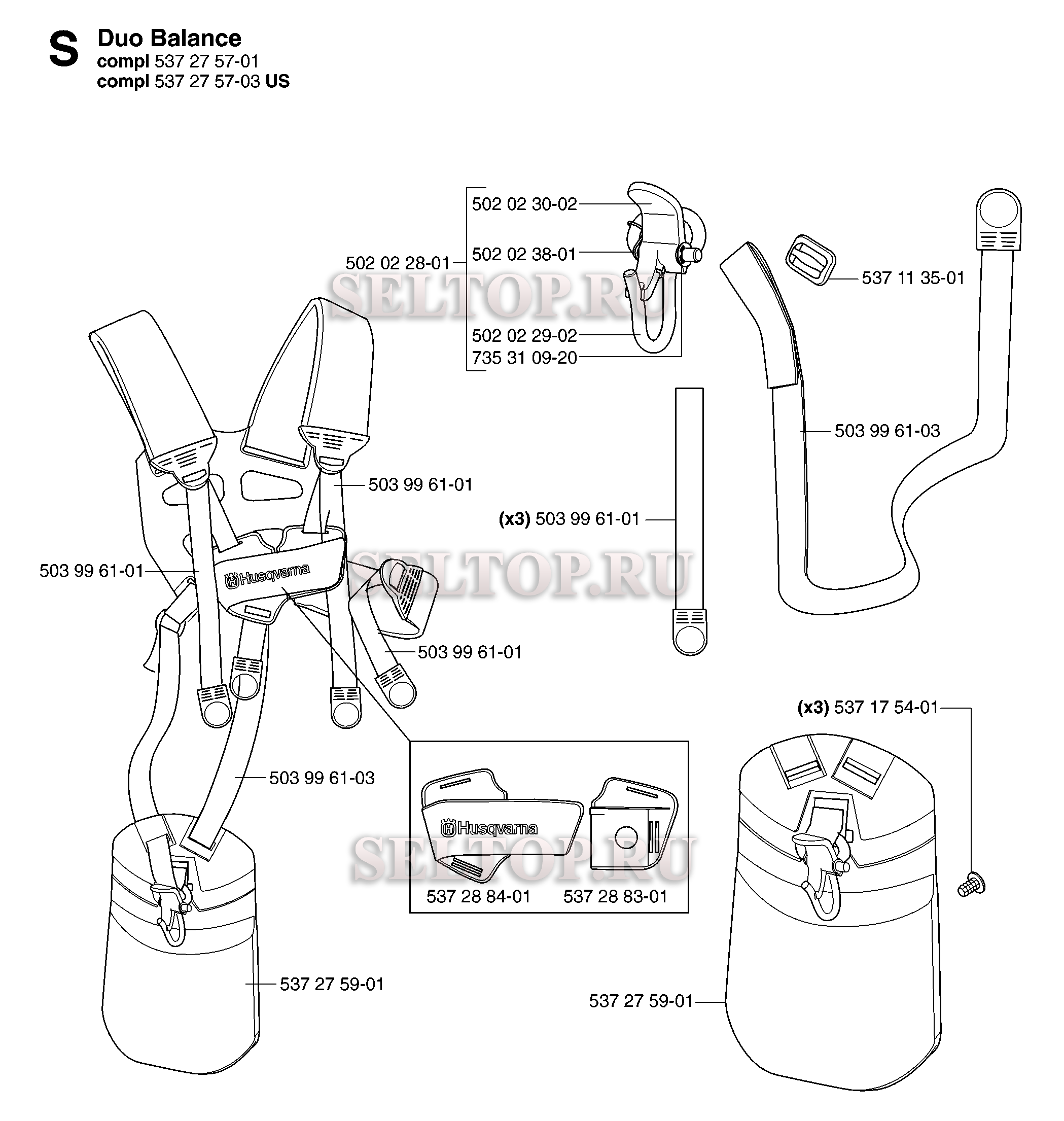Подвесная система для триммера Husqvarna 235 FR (c 2007-01), взрыв-схема: