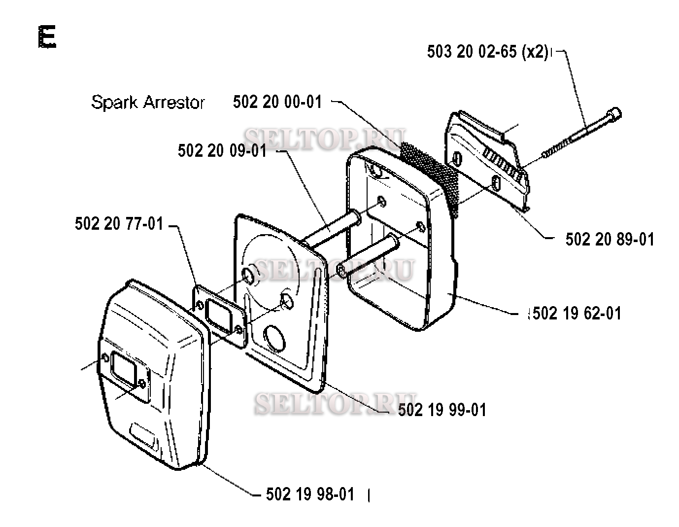 Глушитель для триммера Husqvarna 235 R (c 1991-12), взрыв-схема: