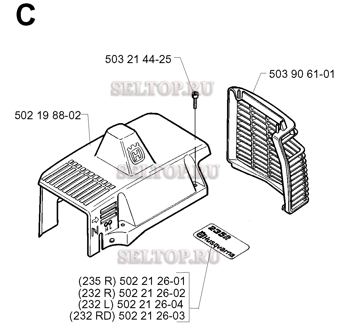 Крышка цилиндра для триммера Husqvarna 235 R (c 1998-01), взрыв-схема: