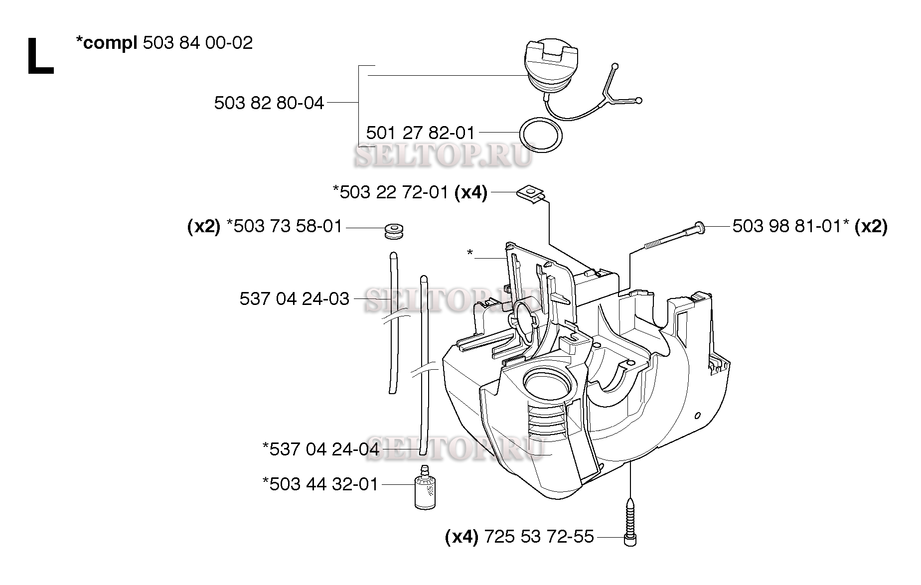 Топливный бак для триммера Husqvarna 235 R (c 2014-12), взрыв-схема: