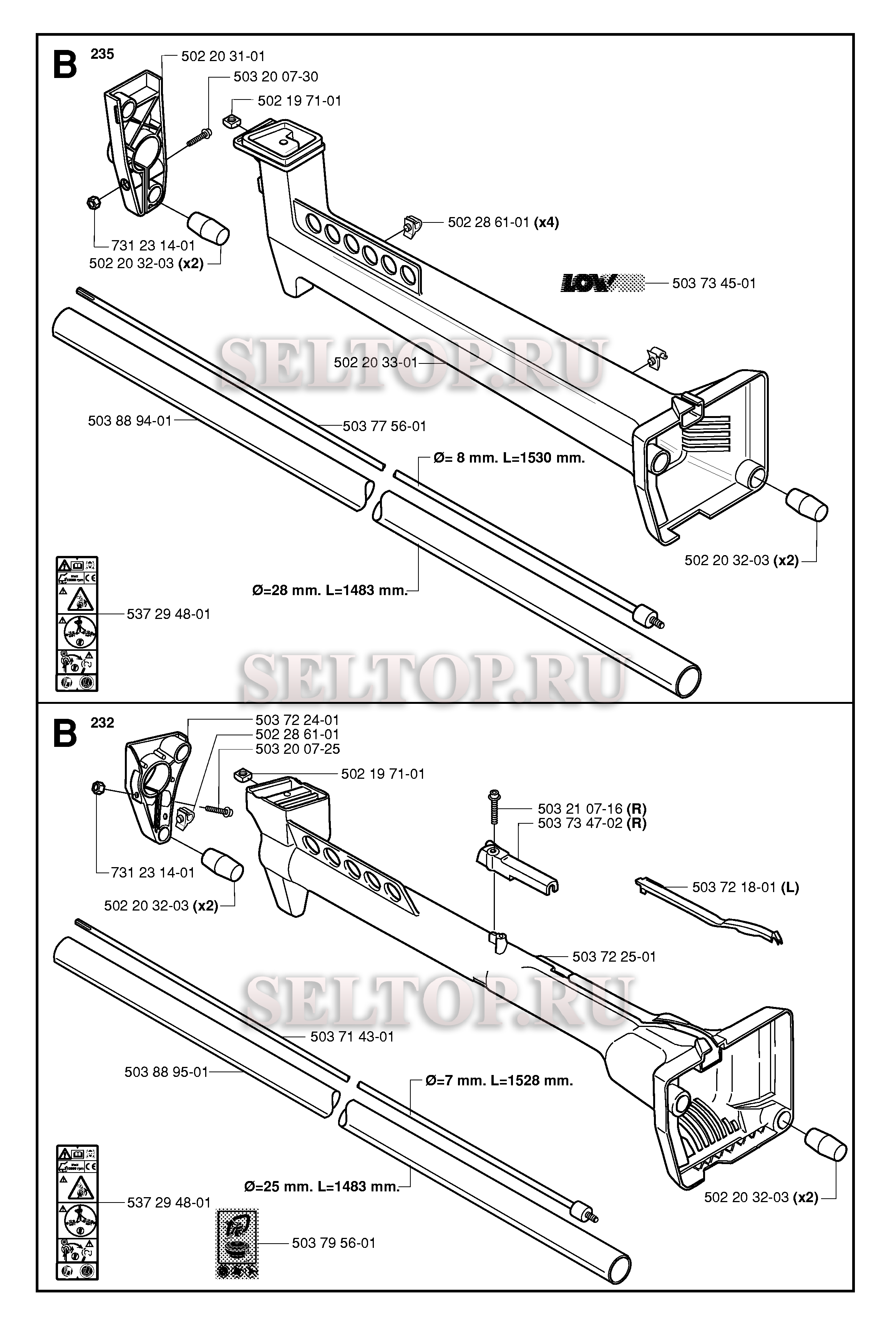 Ведущий вал для триммера Husqvarna 235 RII (c 2006-01), взрыв-схема: