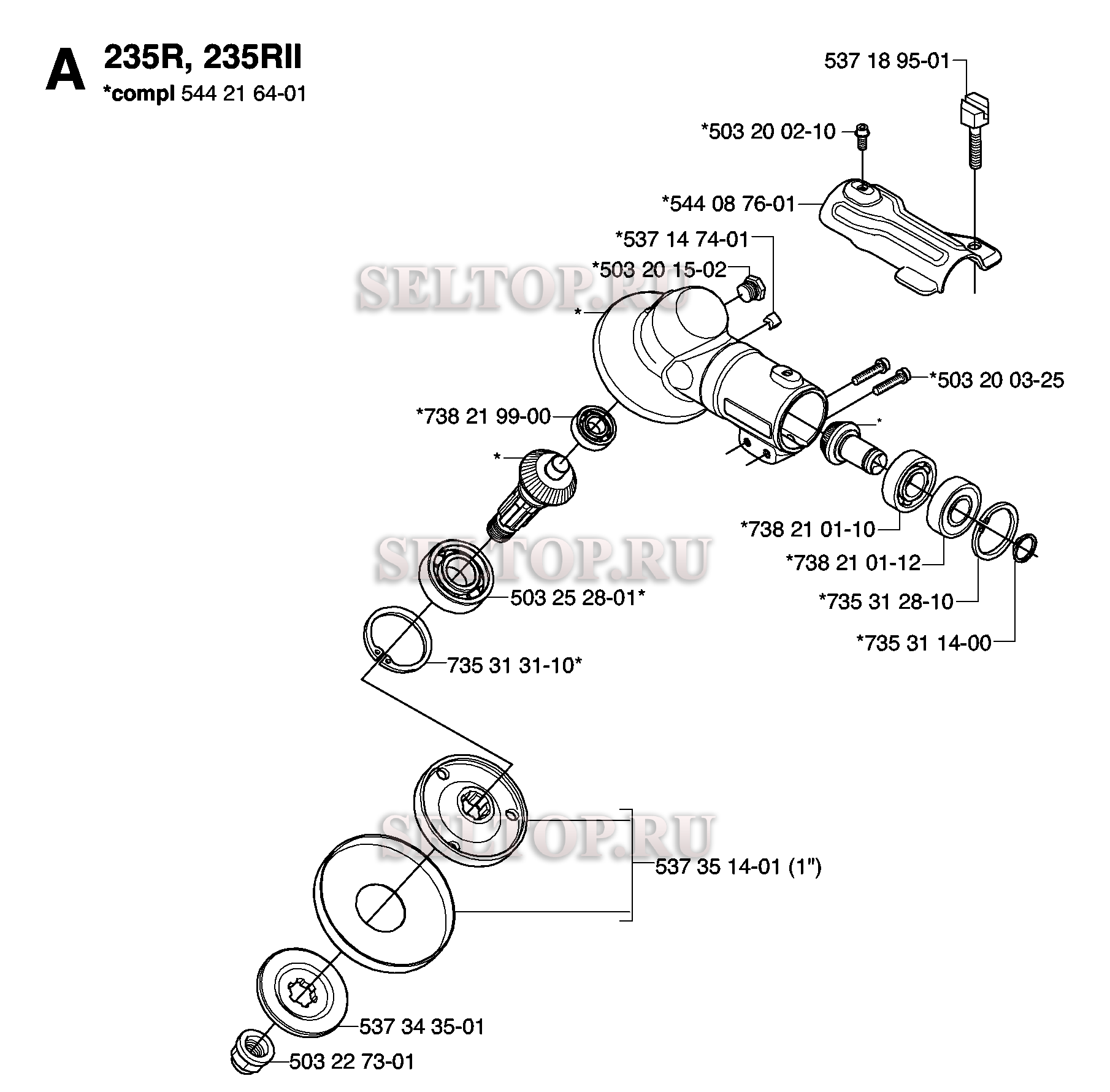 Редуктор для триммера Husqvarna 235 RII (c 2006-04), взрыв-схема: