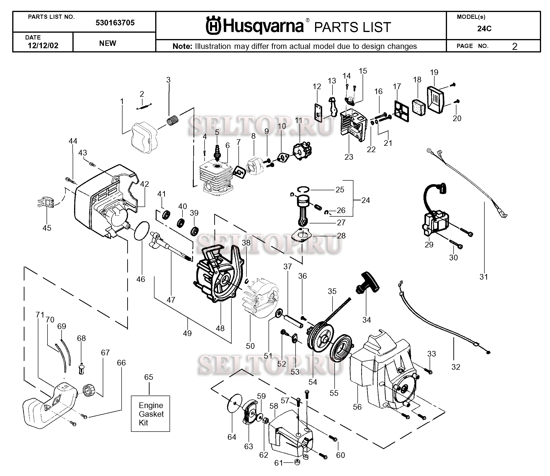 Двигатель для триммера Husqvarna 24 C (с 2003-01), взрыв-схема: