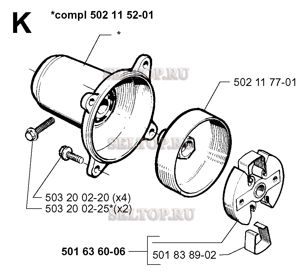 Сцепление для триммера Husqvarna 240 R (c 1996-06), взрыв-схема: