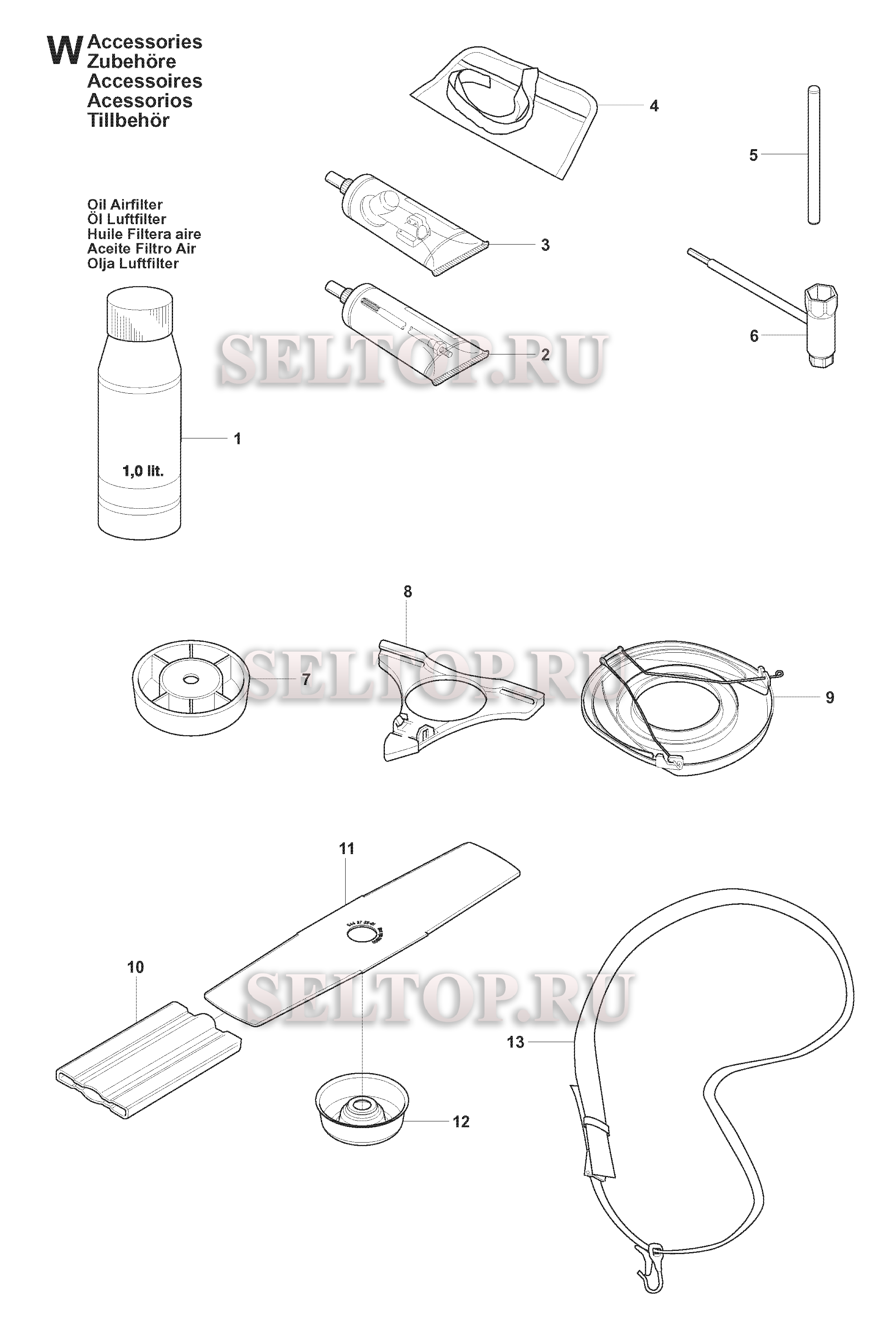 Аксессуары для триммера Husqvarna 241 R (c 2007-11), взрыв-схема: