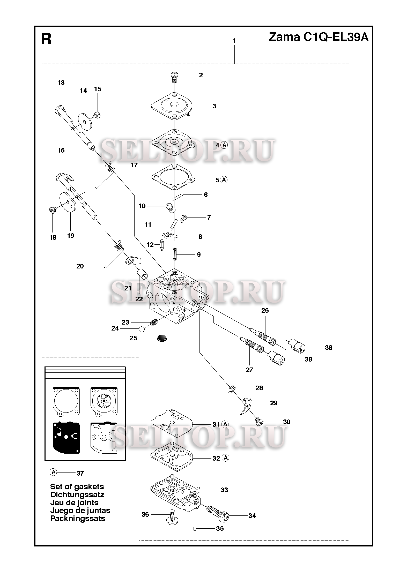 Карбюратор (Zama C1Q-EL39A) для триммера Husqvarna 241 R (c 2009-09), взрыв-схема: