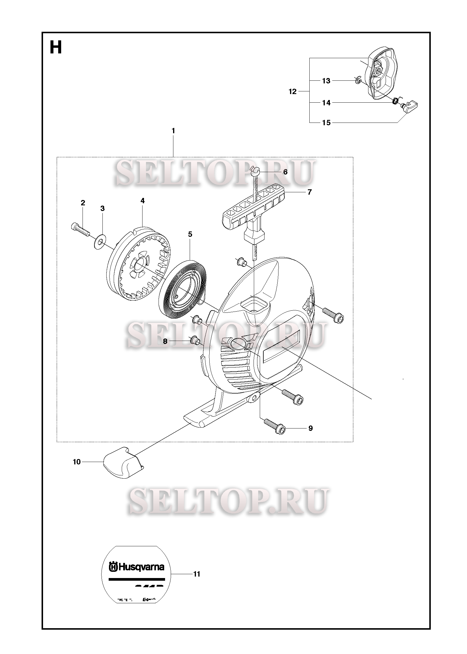 Стартер для триммера Husqvarna 241 R (c 2009-09), взрыв-схема: