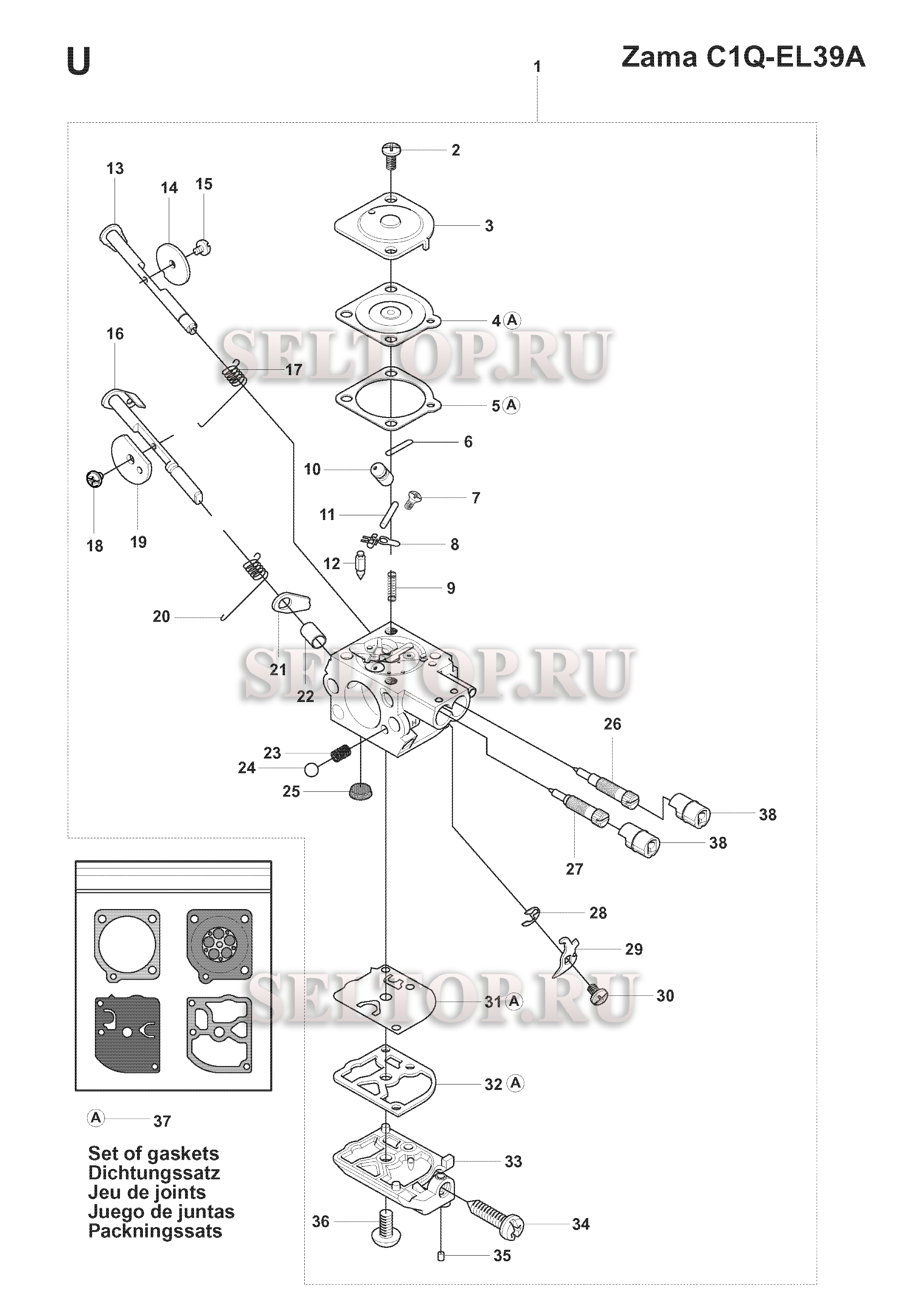 Запчасти карбюратора (вариант 2) для триммера Husqvarna 241 RJ (c 2014-12)