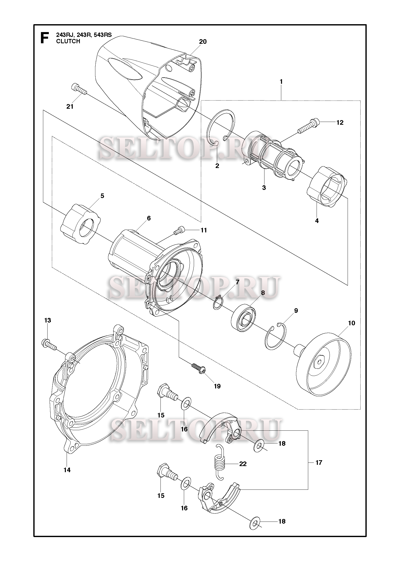 Сцепление для триммера Husqvarna 243 RJ (c 2012-03), взрыв-схема:
