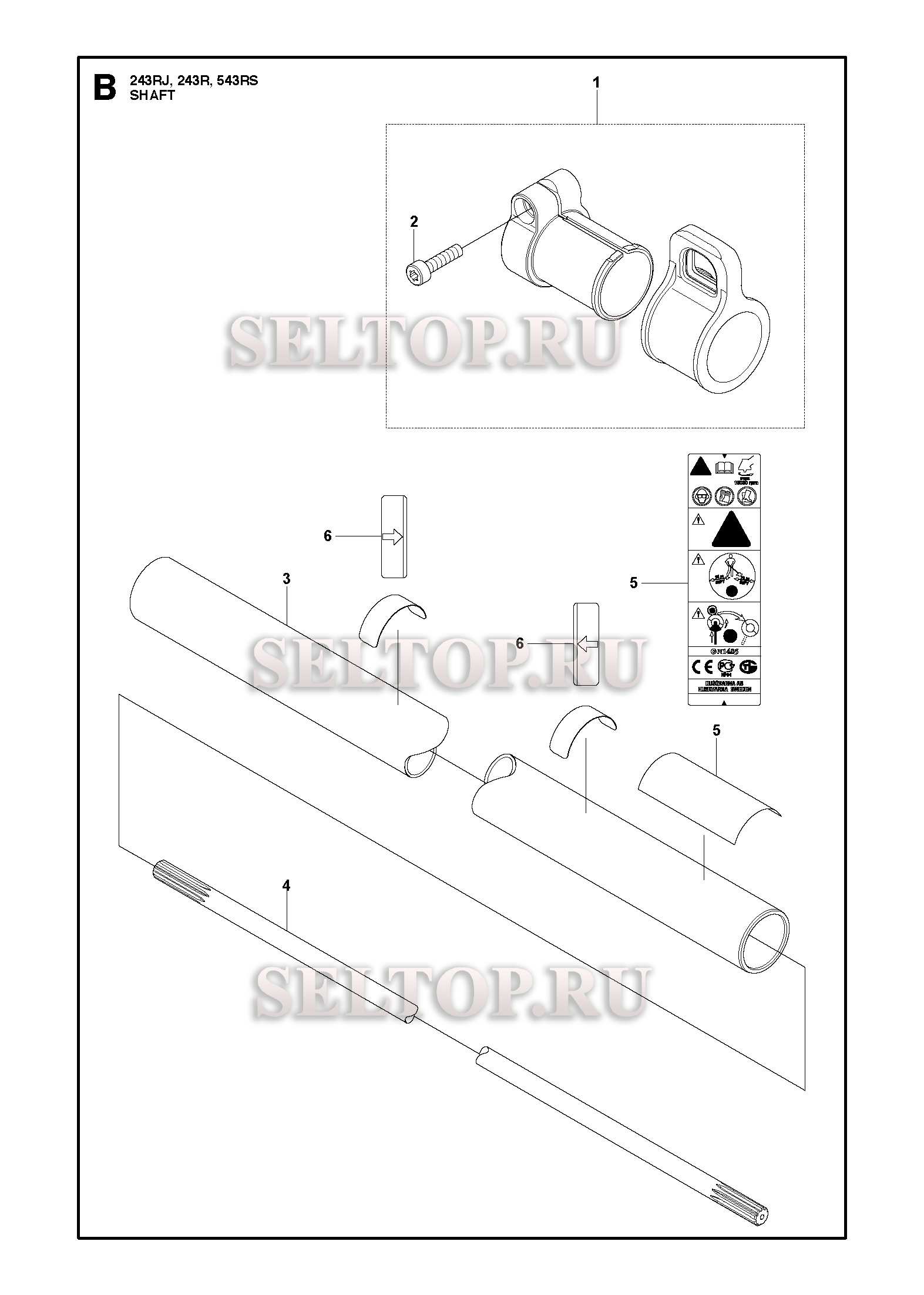 Ведущий вал для триммера Husqvarna 243 RJ (c 2012-03), взрыв-схема: