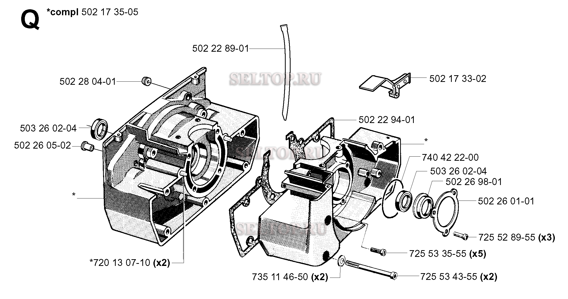 Картер для триммера Husqvarna 250 R (c 2014-12), взрыв-схема: