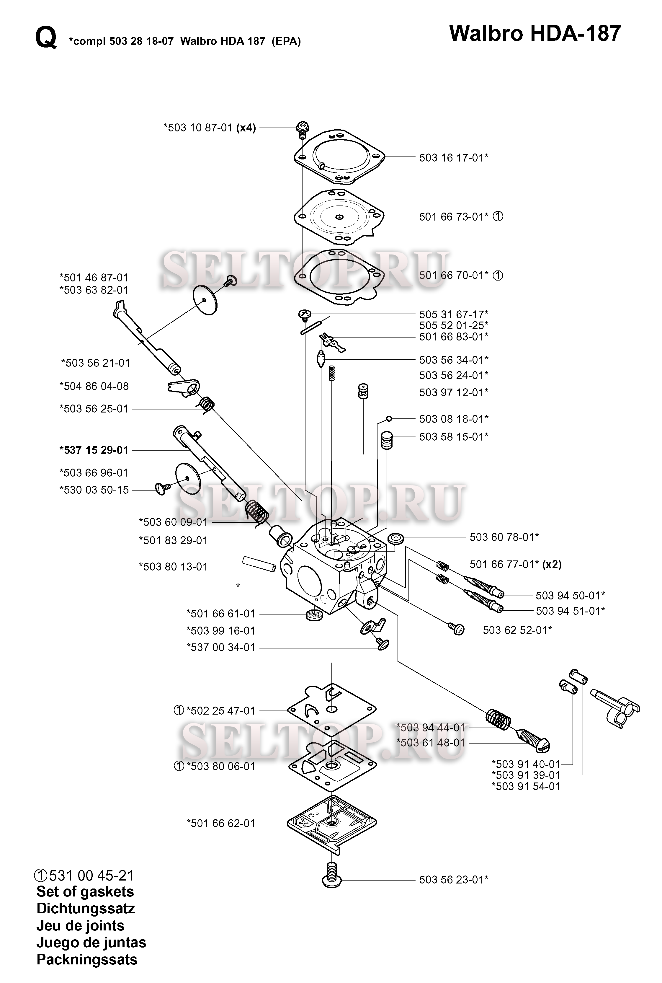 Запчасти карбюратора (вариант 2) для триммера Husqvarna 250 REPA (c 2001-05)