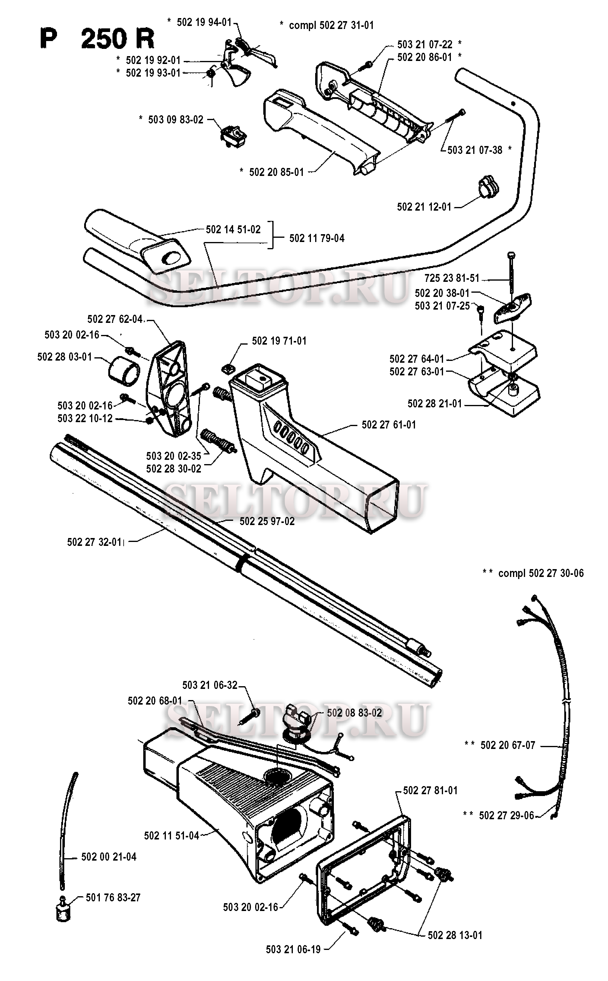 Ведущий вал (вариант 2) для триммера Husqvarna 250 RX (c 1994-10), взрыв-схема: