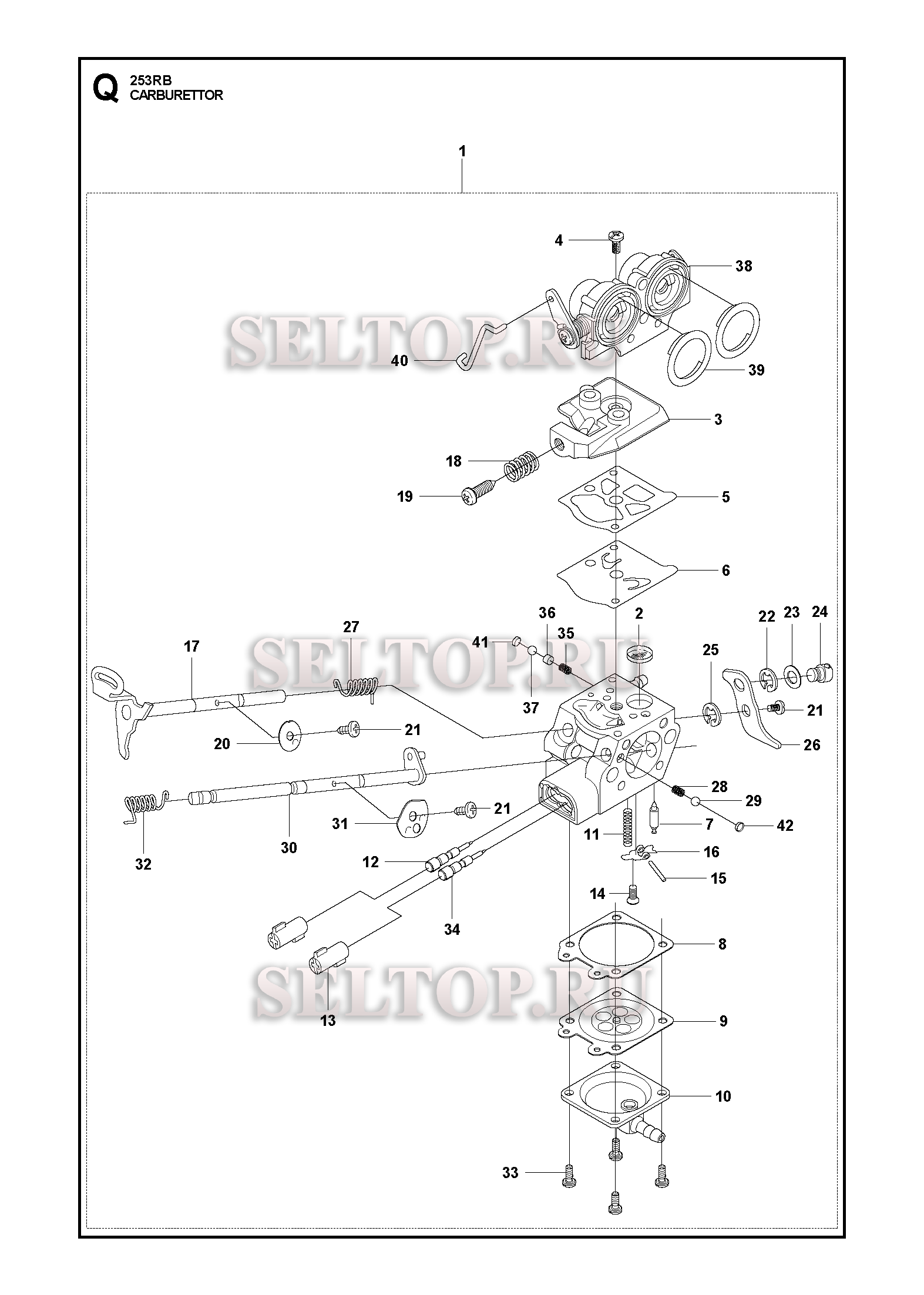 Карбюратор для триммера Husqvarna 253 RB (c 2010-03), взрыв-схема:
