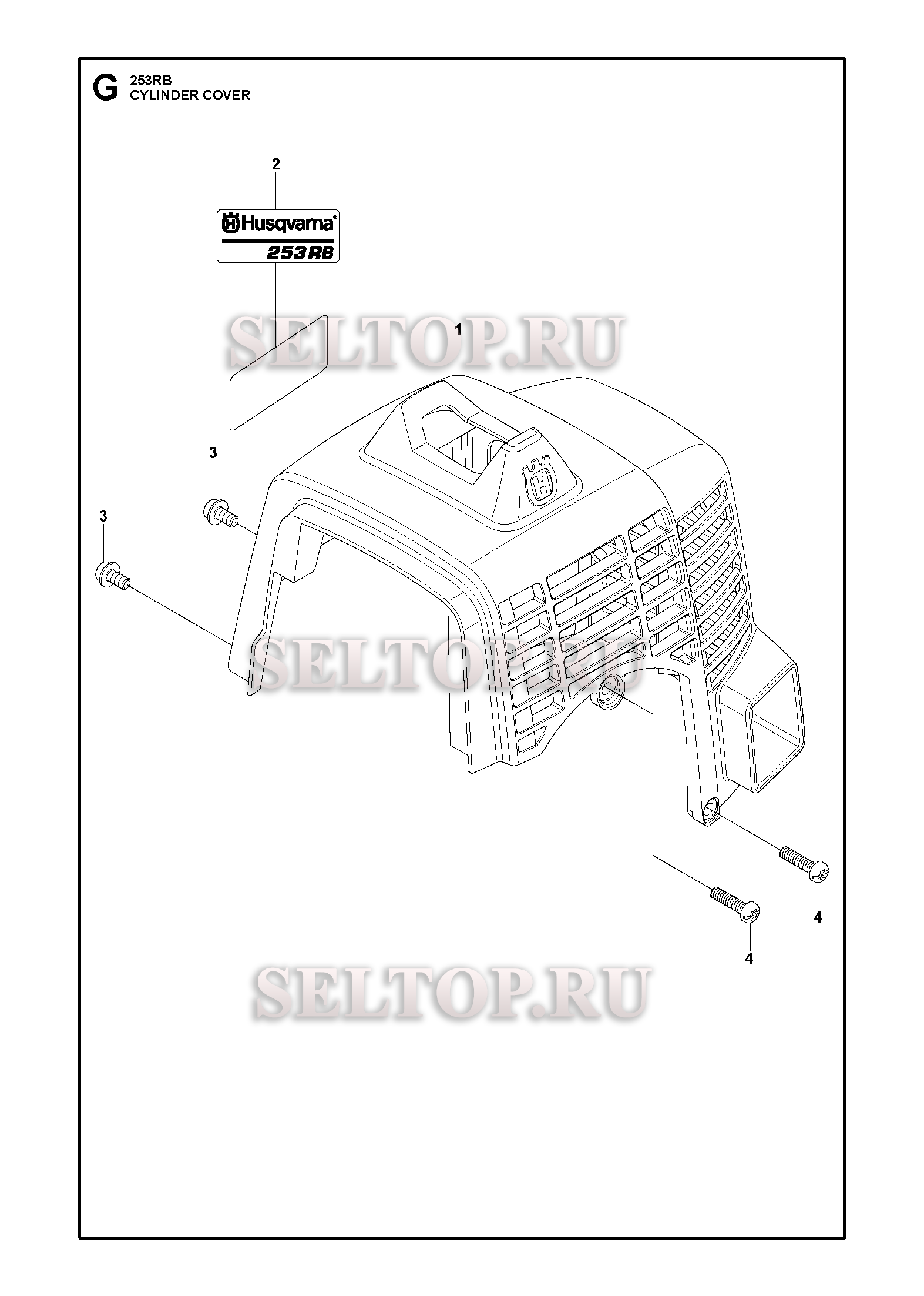 Крышка цилиндра для триммера Husqvarna 253 RB (c 2010-03), взрыв-схема: