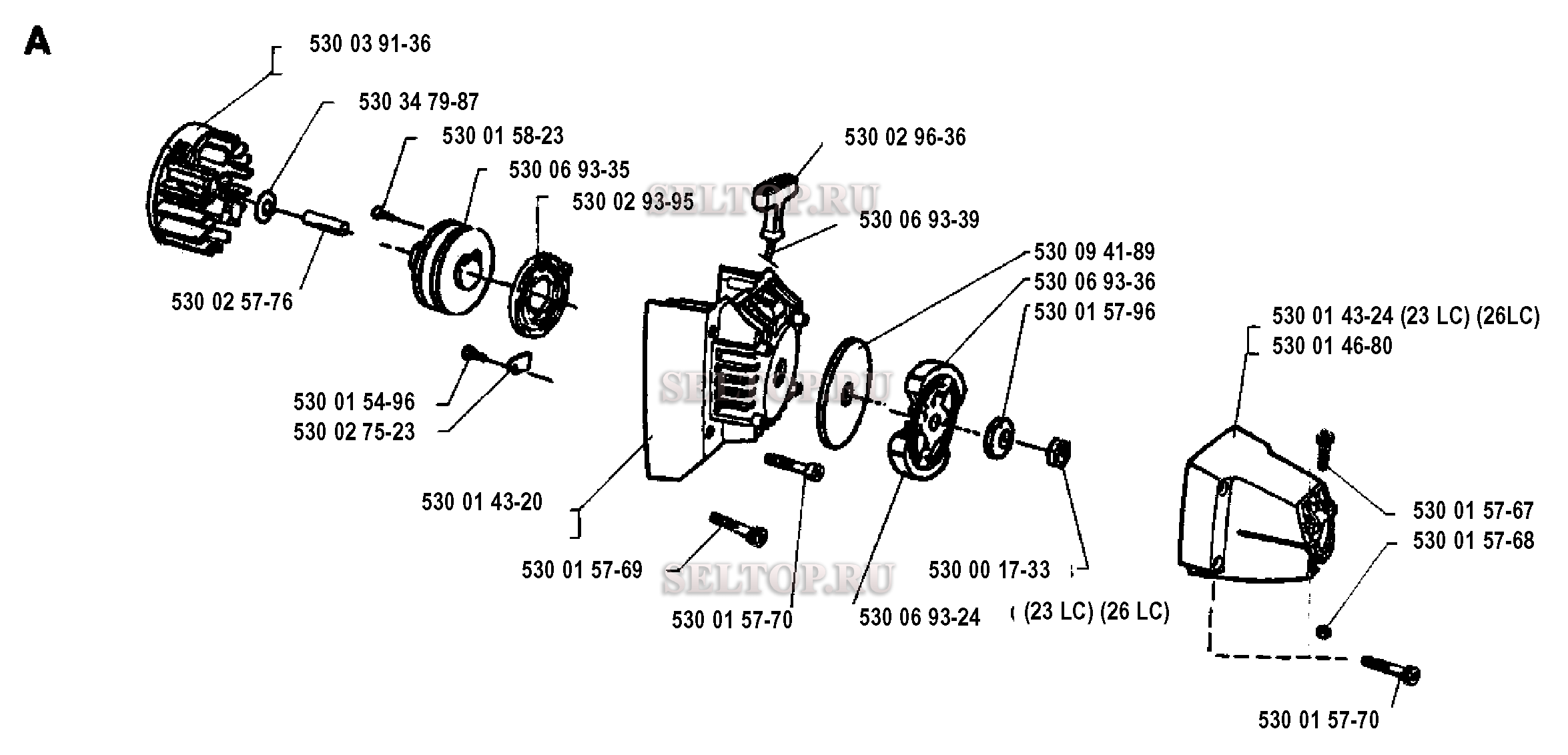 Система зажигания, сцепление для триммера Husqvarna 26 R (c 1993-05)