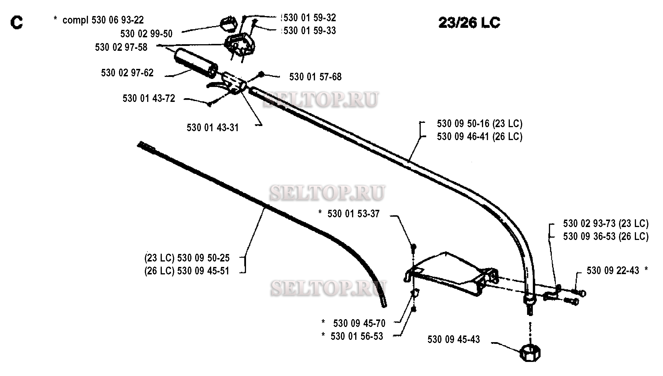 Ведущий вал для триммера Husqvarna 26 R (c 1993-05), взрыв-схема: