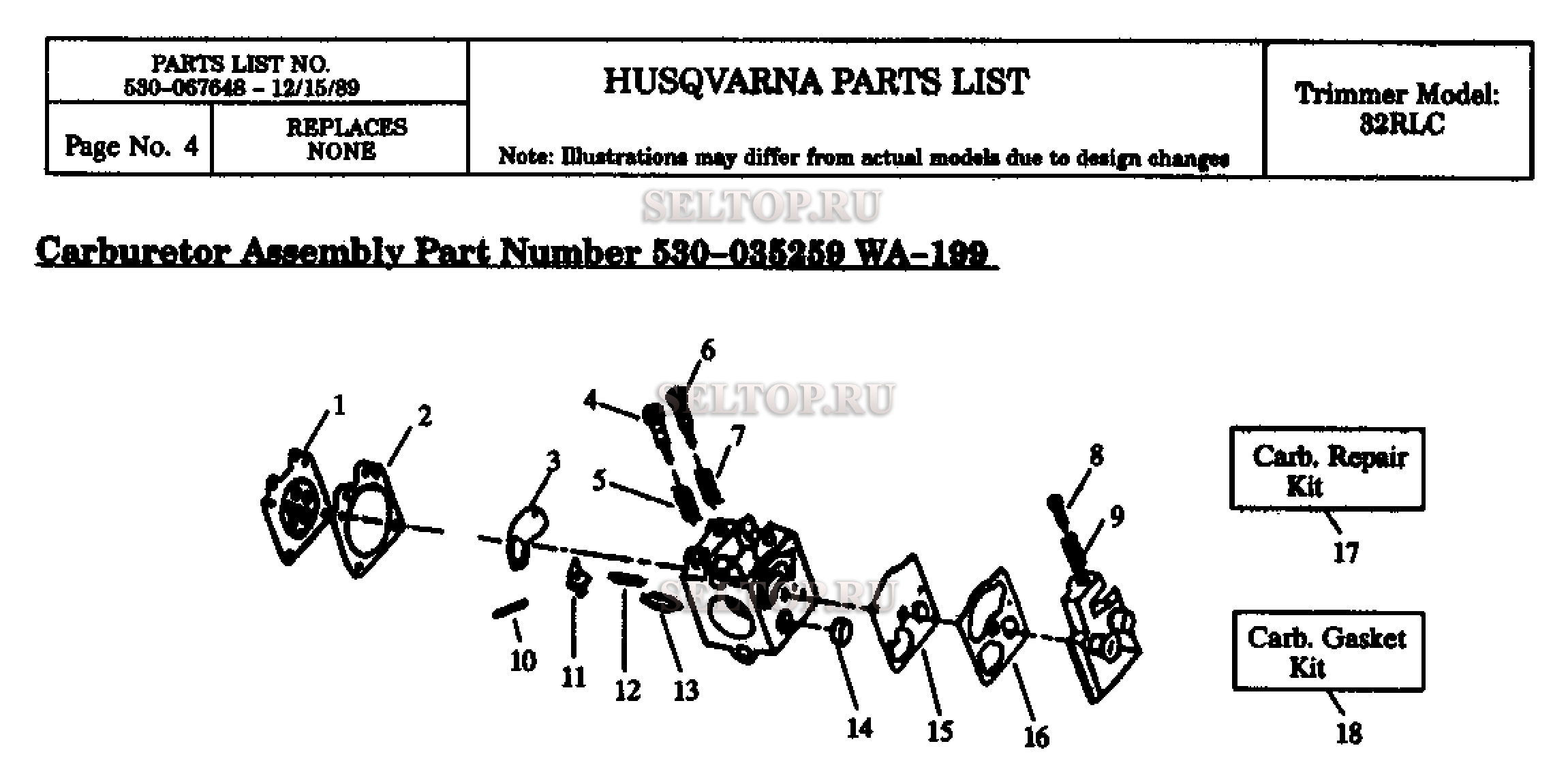 Запчасти карбюратора для триммера Husqvarna 32 RLC (c 1990-01)