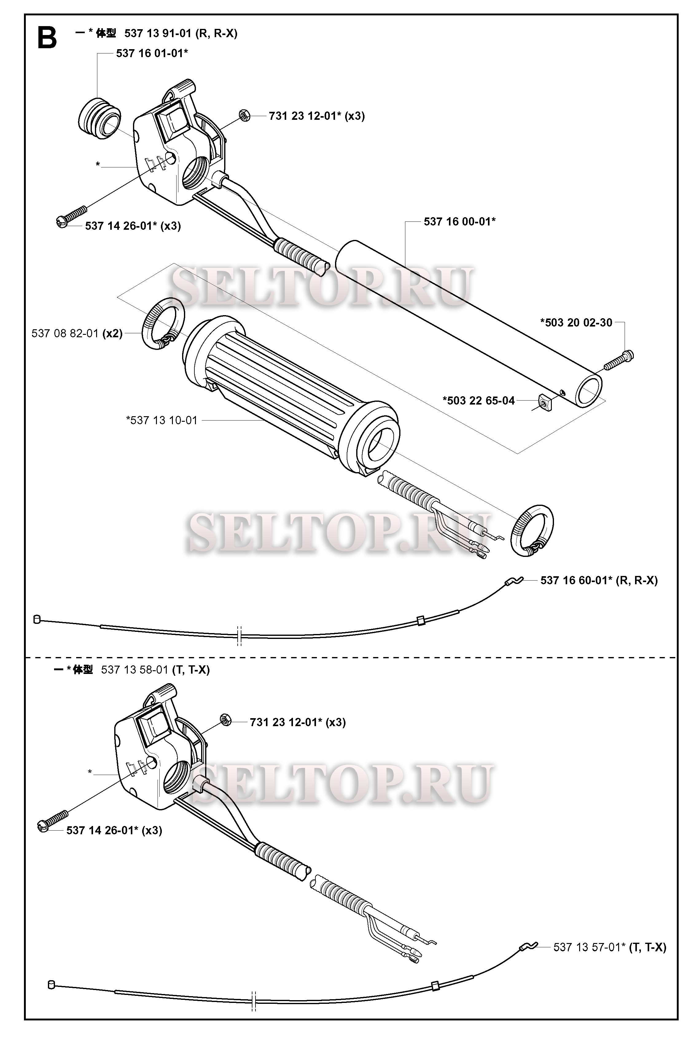 Управление дросселем для триммера Husqvarna 322 T (с 2001-02), взрыв-схема: