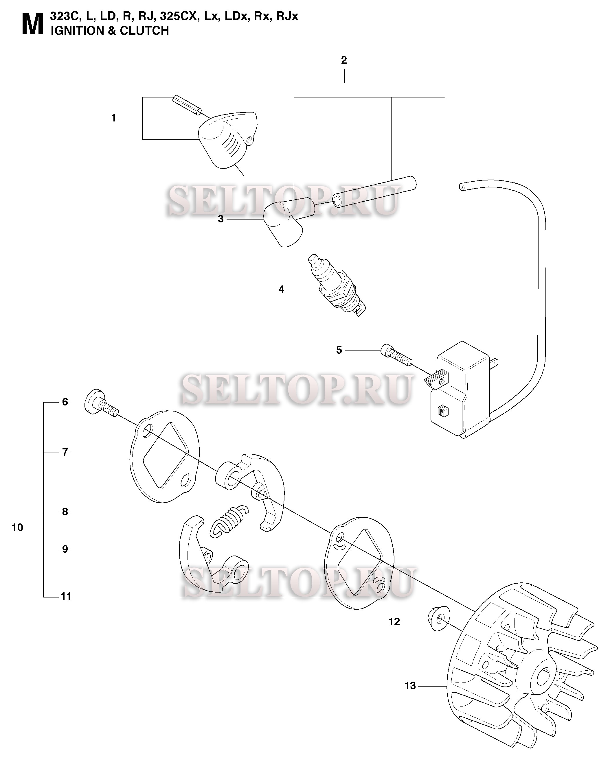 Система зажигания, сцепление для триммера Husqvarna 323 C (с 2008-03)