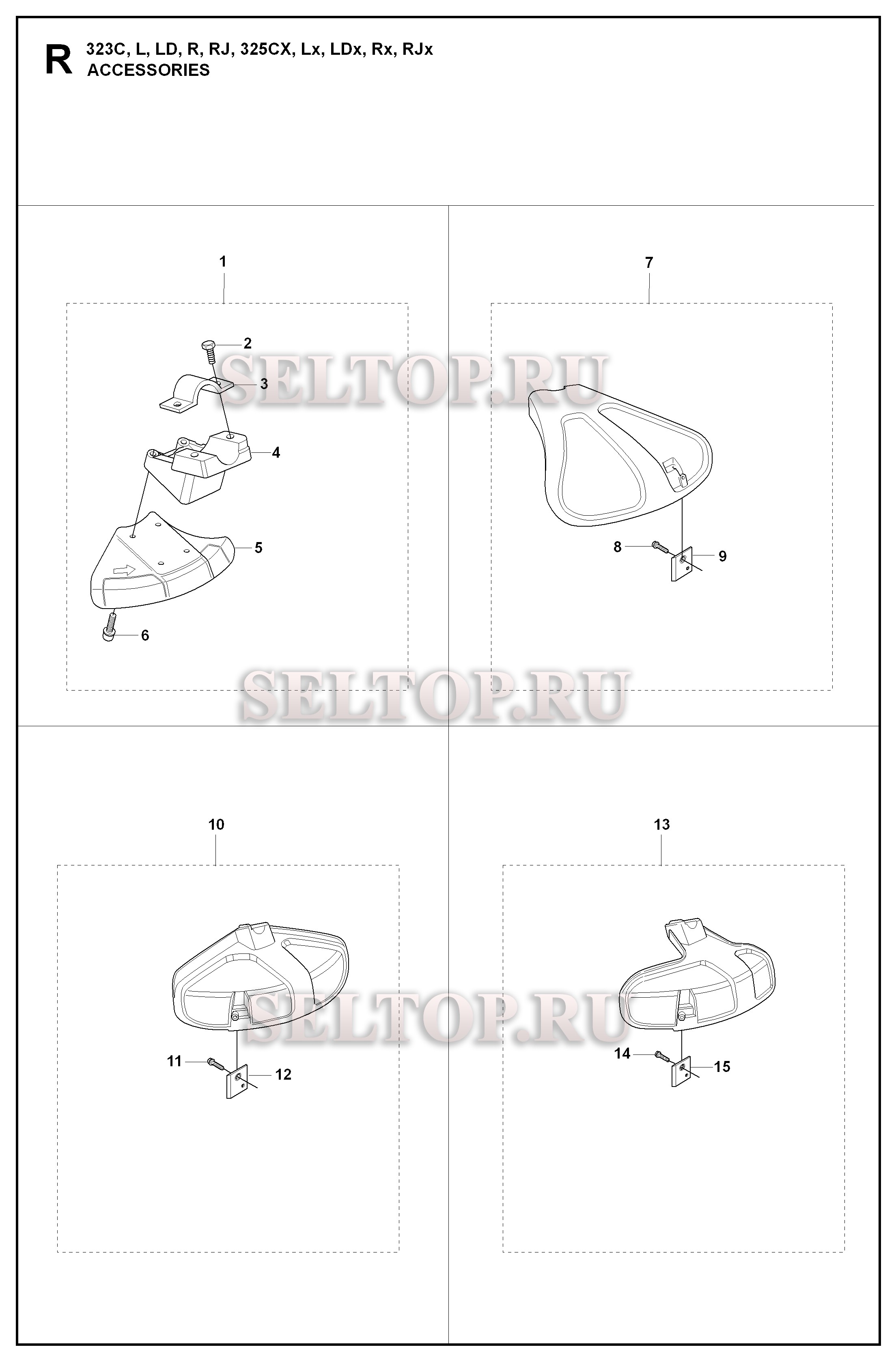 Защита для триммера Husqvarna 323 C (с 2008-03), взрыв-схема: