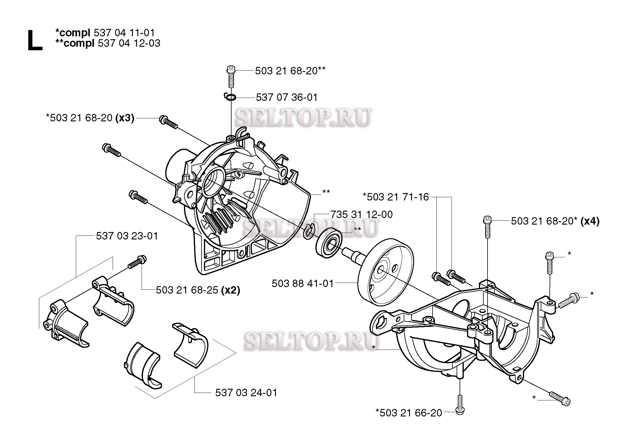 Картер для триммера Husqvarna 323 E (с 2002-03), взрыв-схема: