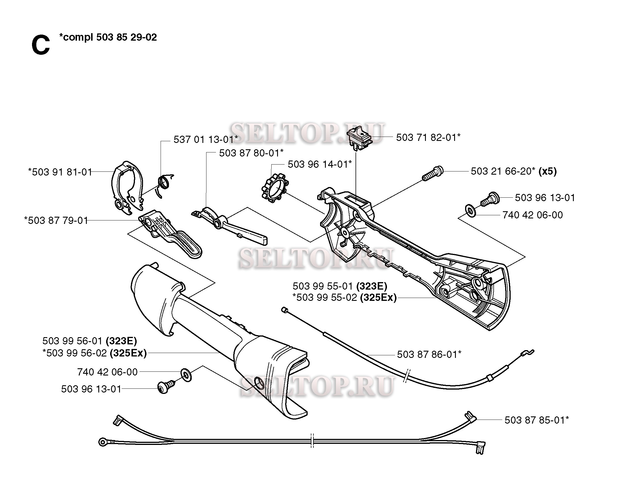 Ручка для триммера Husqvarna 323 E (с 2002-03), взрыв-схема: