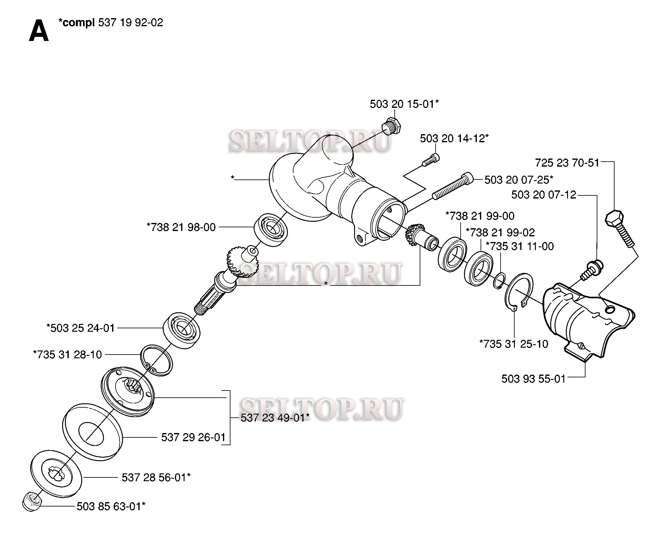 Редуктор для триммера Husqvarna 323 L (с 2006-04), взрыв-схема: