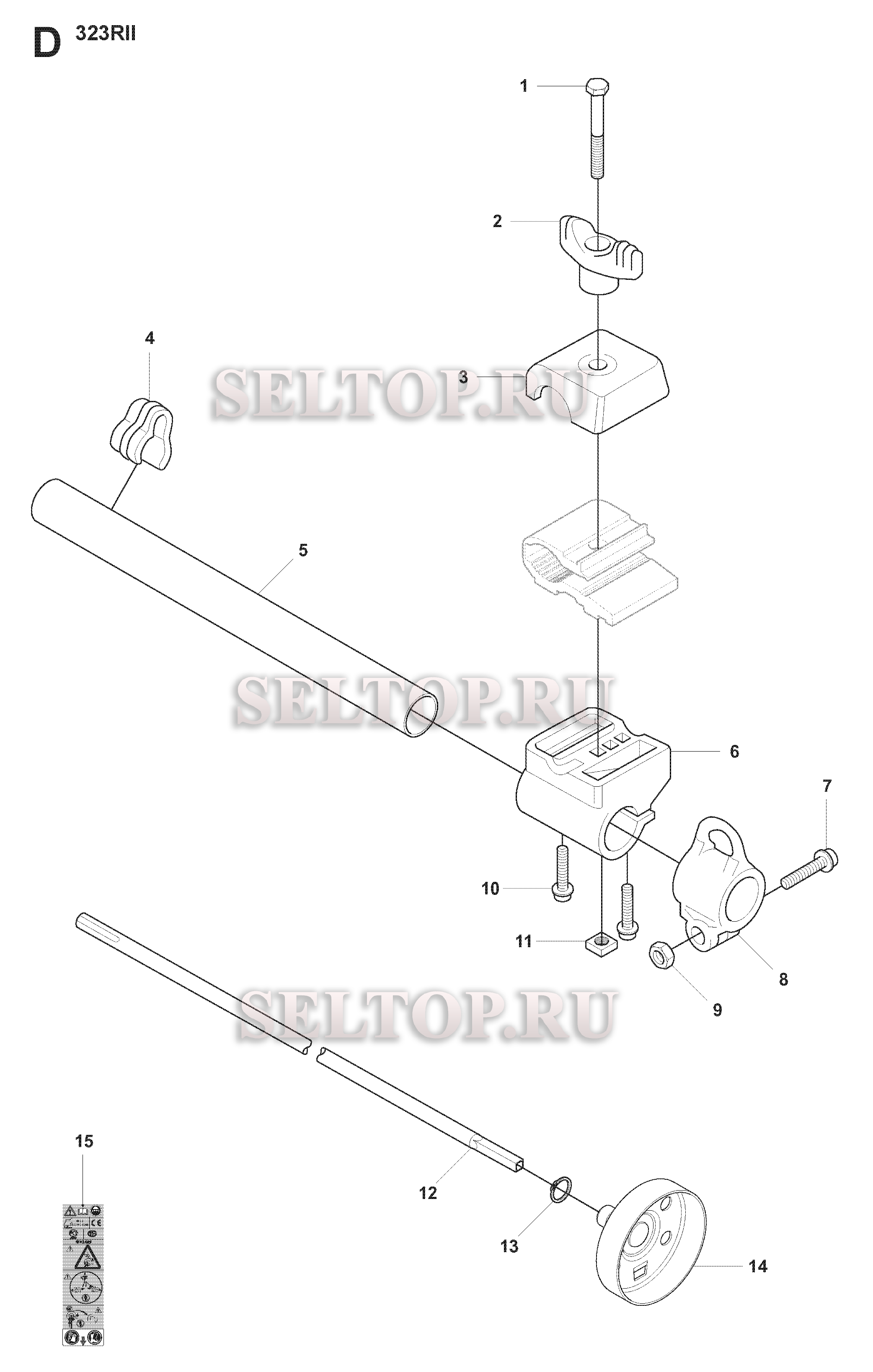 Вал привода, редуктор для триммера Husqvarna 323 RII (c 2008-03), взрыв-схема: