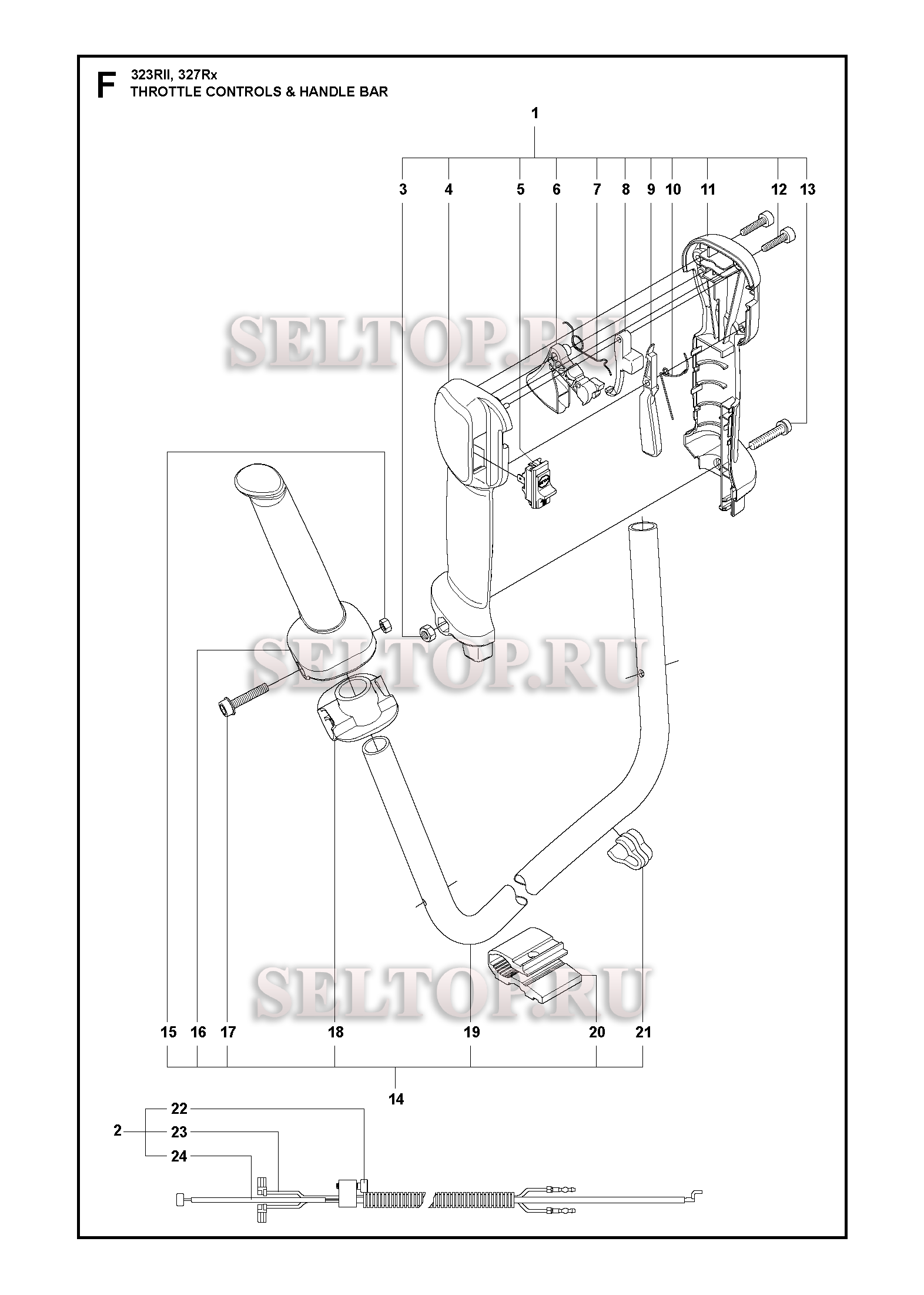 Ручка, рычаги управления для триммера Husqvarna 323 RII (c 2012-01), взрыв-схема: