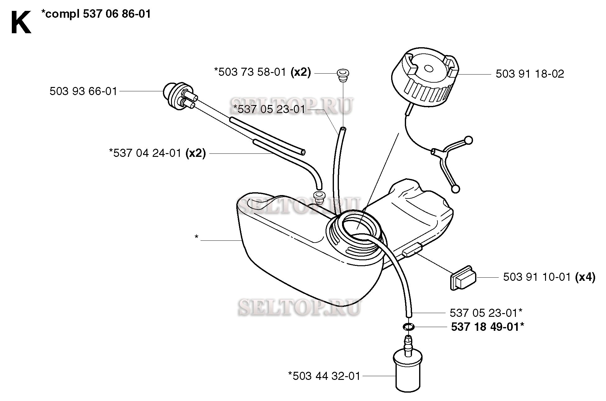 Топливный бак для триммера Husqvarna 323 RJ (c 2002-01), взрыв-схема: