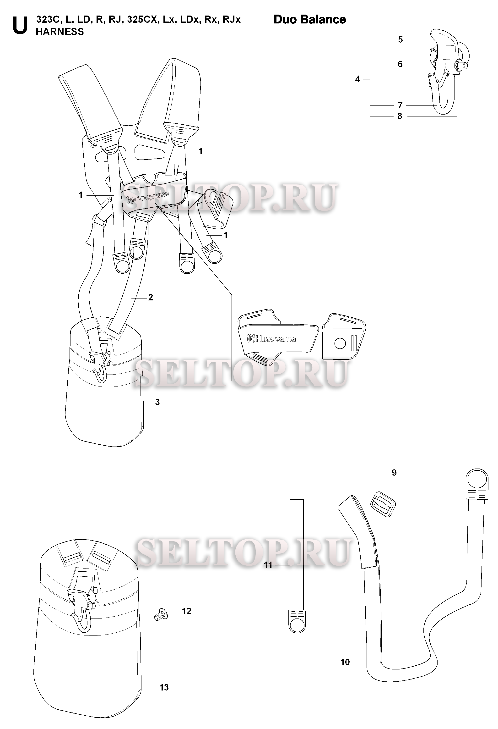 Подвесная система для триммера Husqvarna 323 RJ (c 2008-03), взрыв-схема: